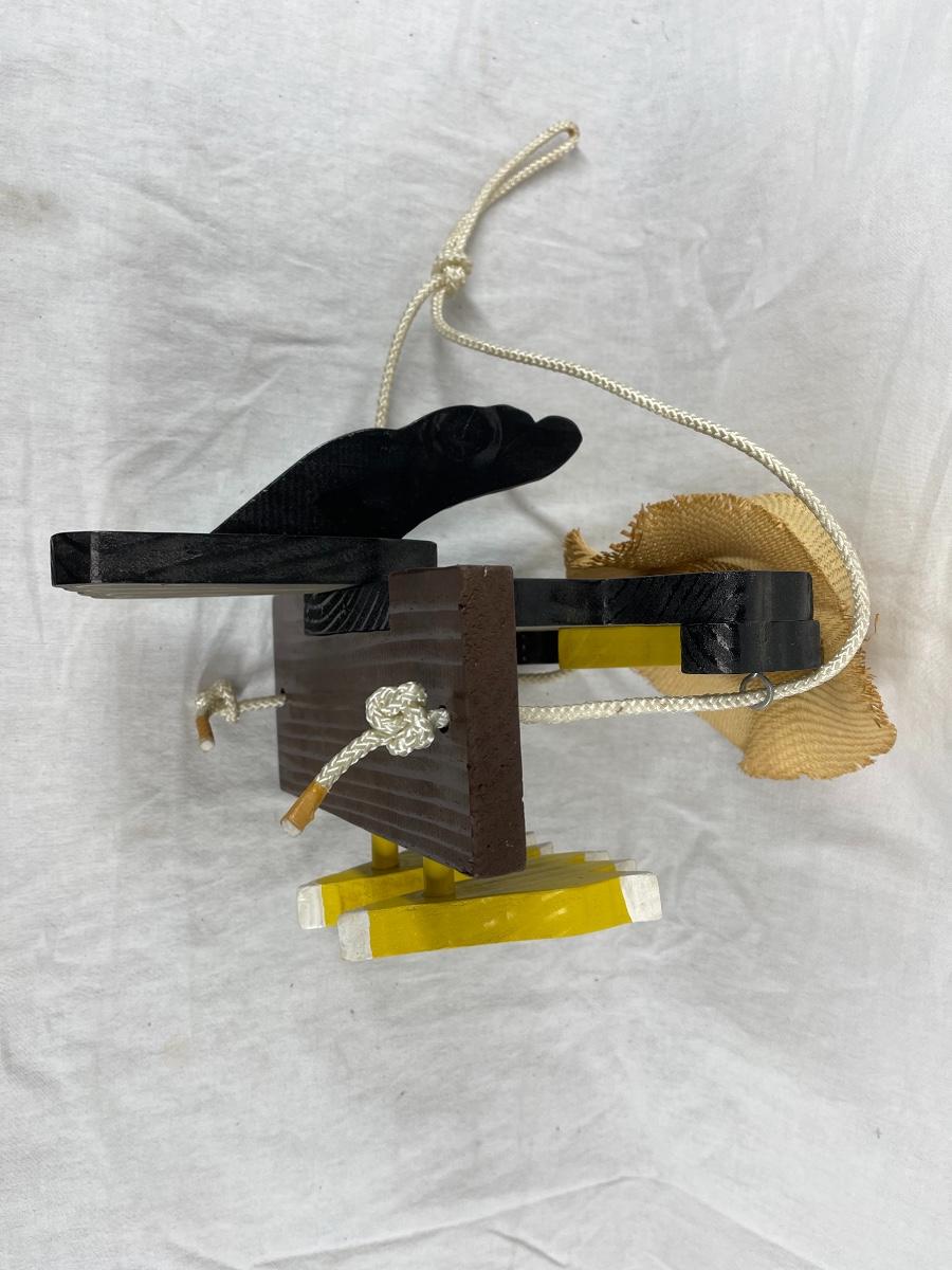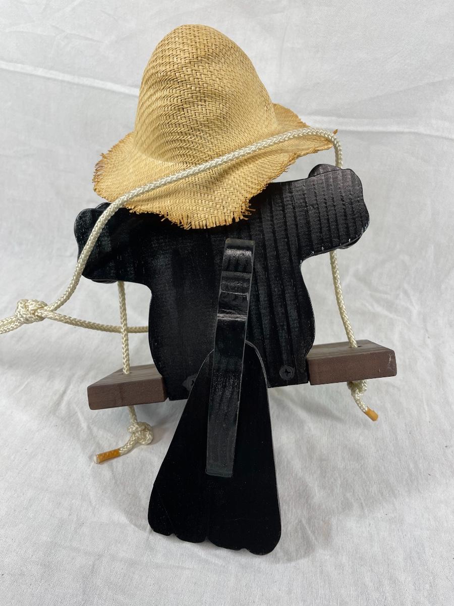 Cute hand made swinging crow blackbird garden art, Hang from tree, hook or eve.