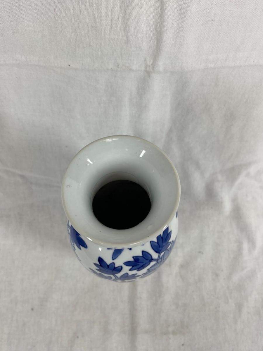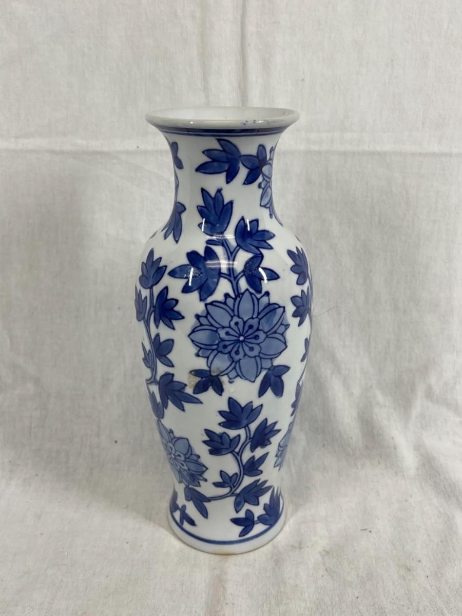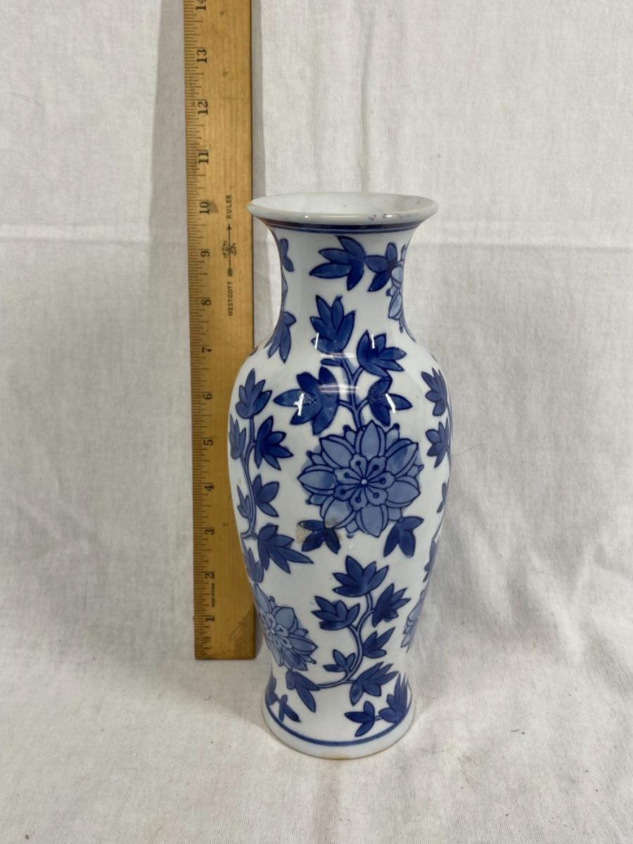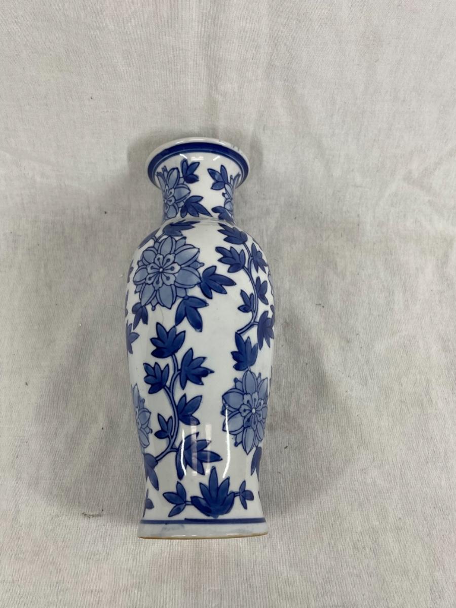 Blue and white floral vase. Asian style design. About 10” tall. Made in China.