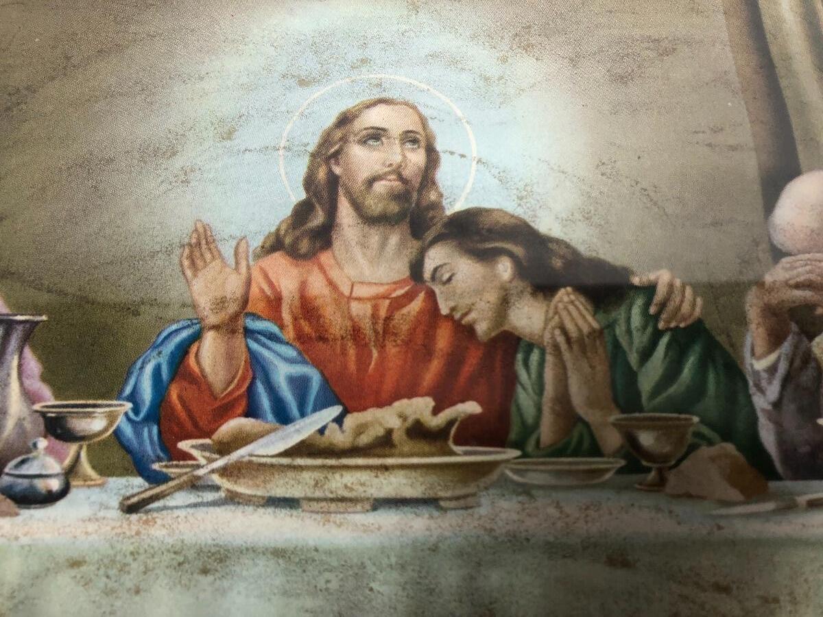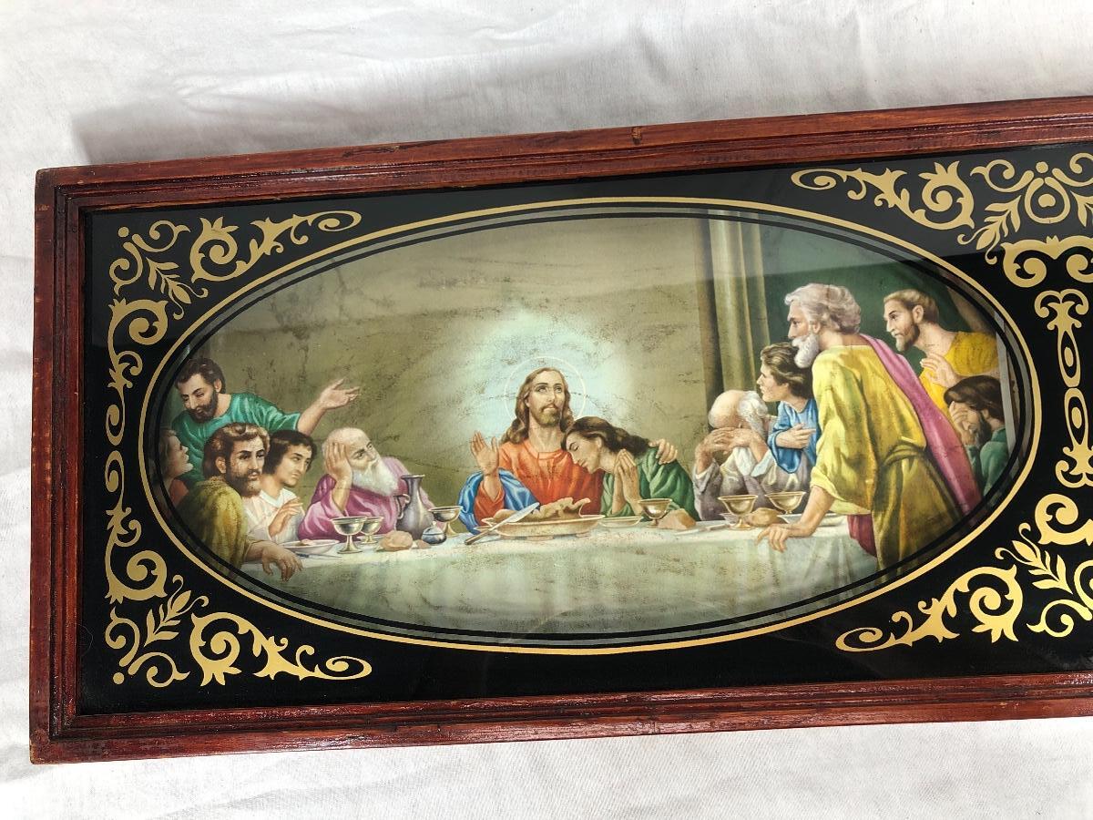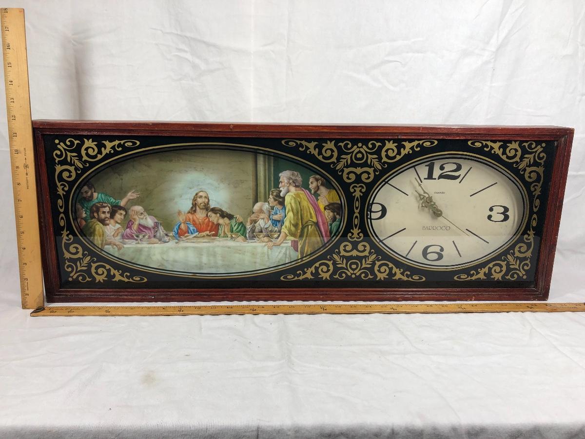 Vintage Jesus' Last Supper wall clock. Battery operated clock, untested. In good condition. About 34" long and 12" wide.