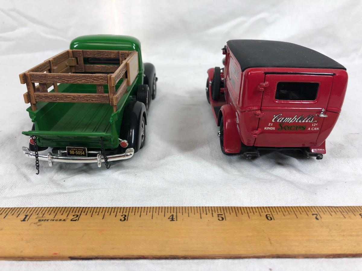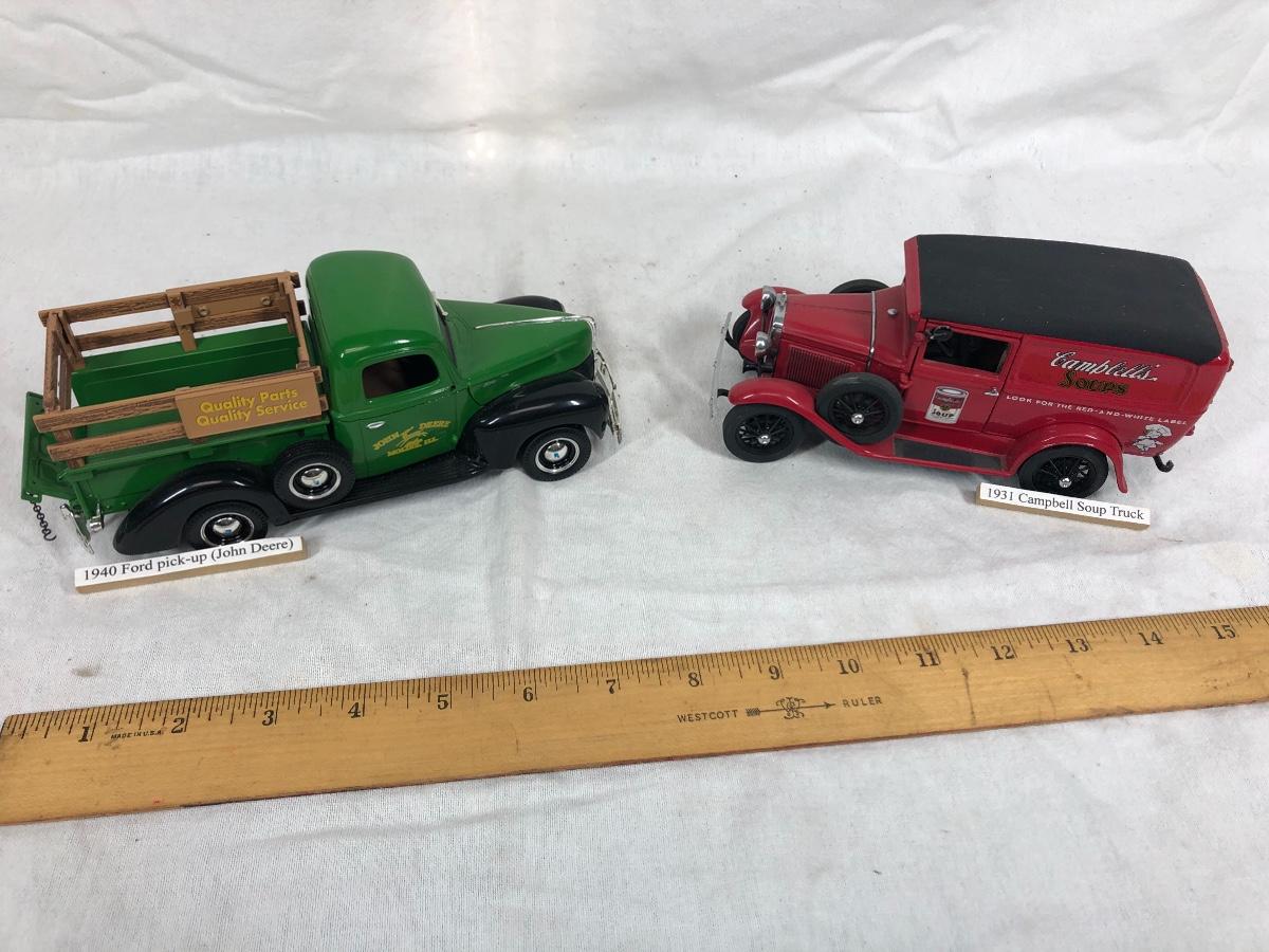 Pair of Die Cast Advertising Model Toy Cars John Deere Campbell's Soup
