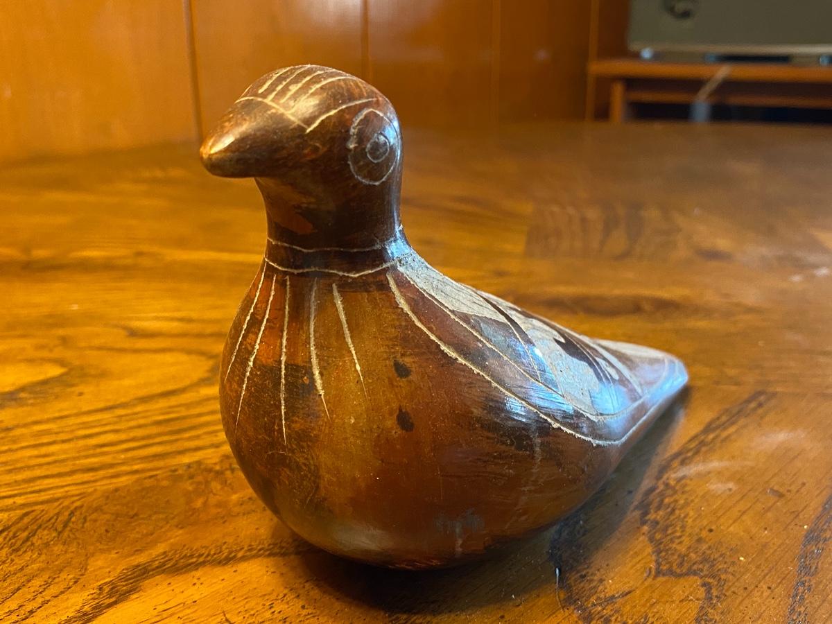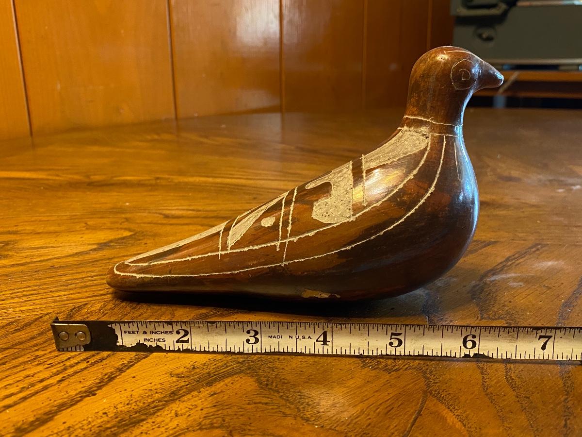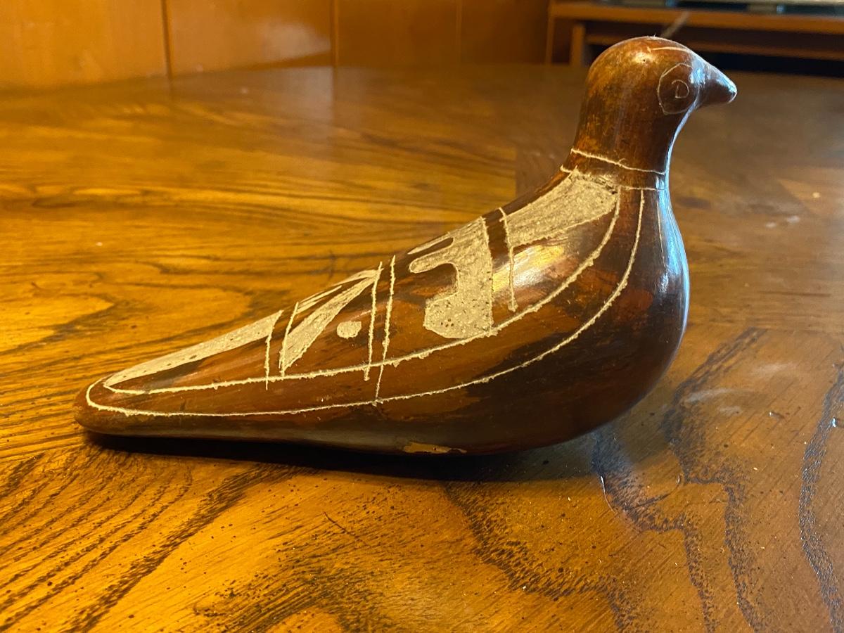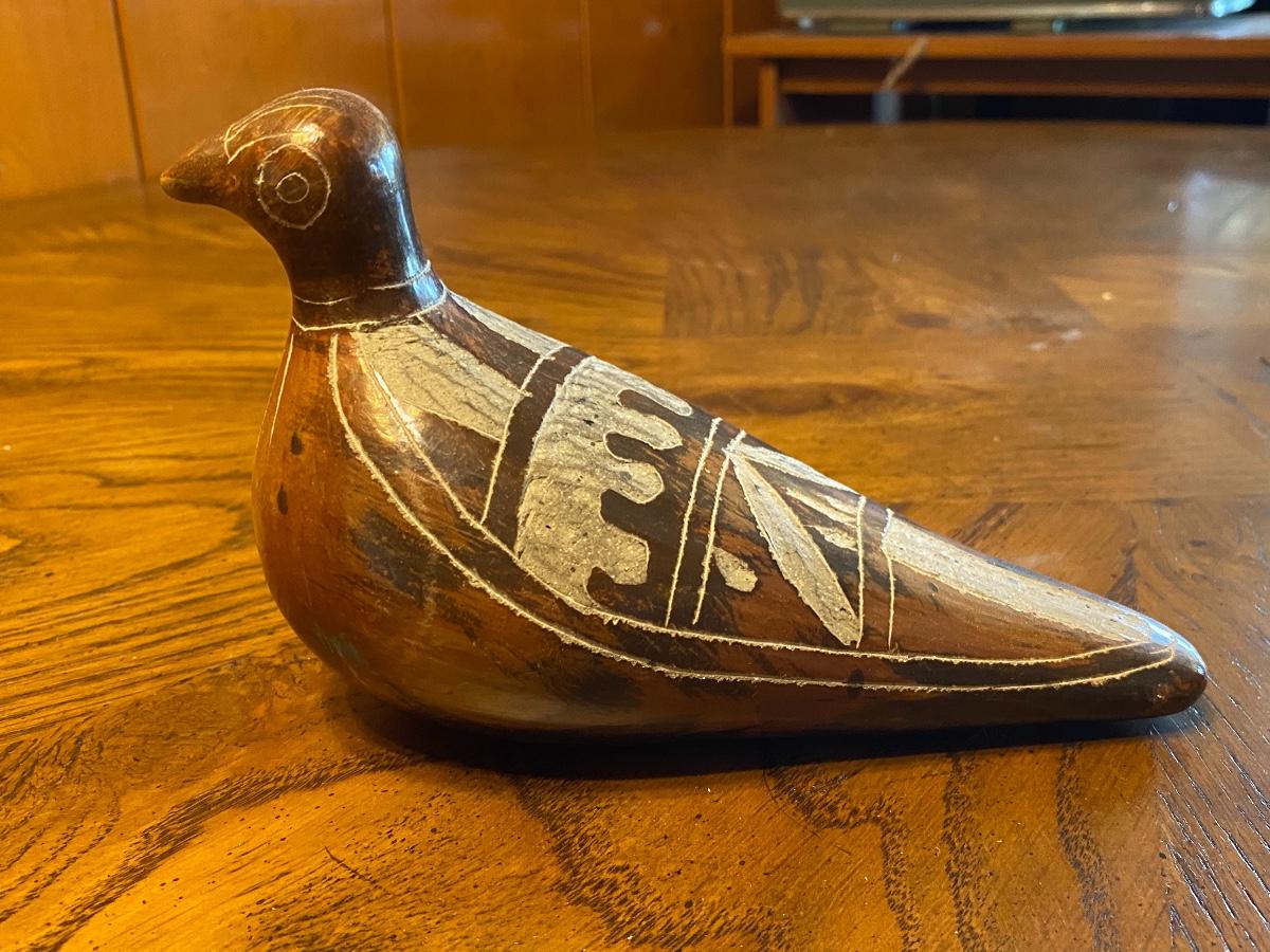 Vintage Southwestern style pottery bird. Etched design. Unmarked.