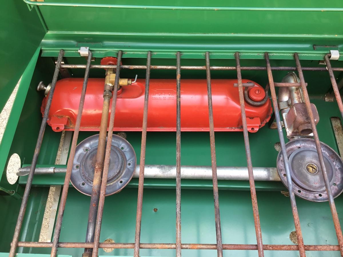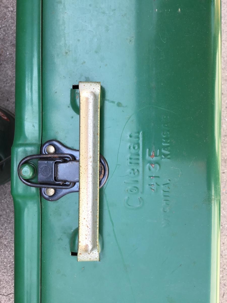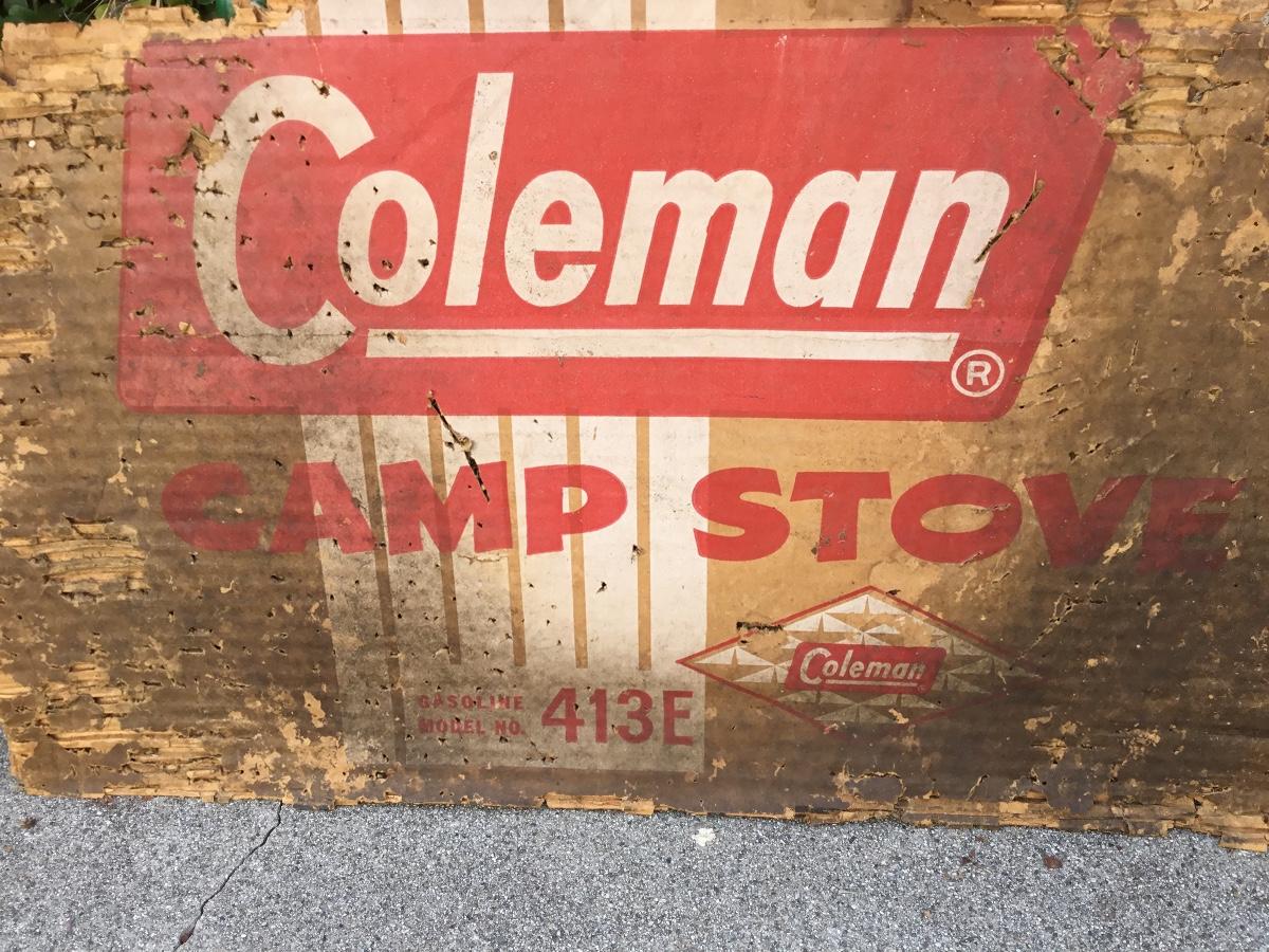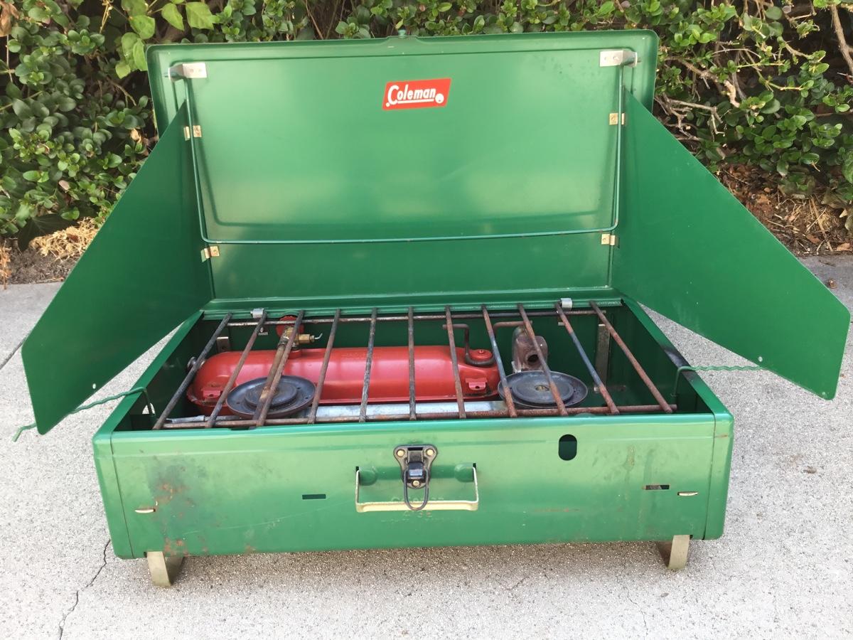 Vintage Coleman camp stove and lantern. In good condition. Untested. Stove is very clean. See photos. Not sure how much fuel was in can if any.