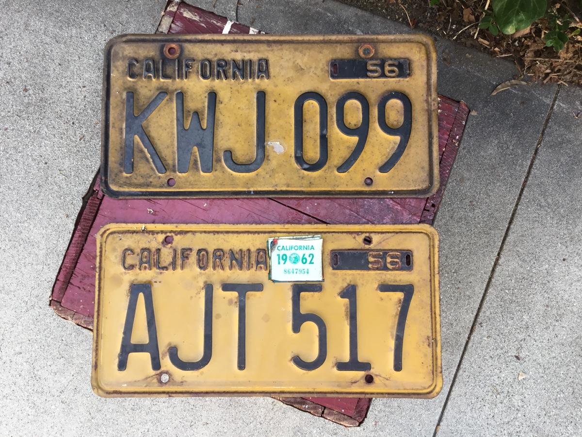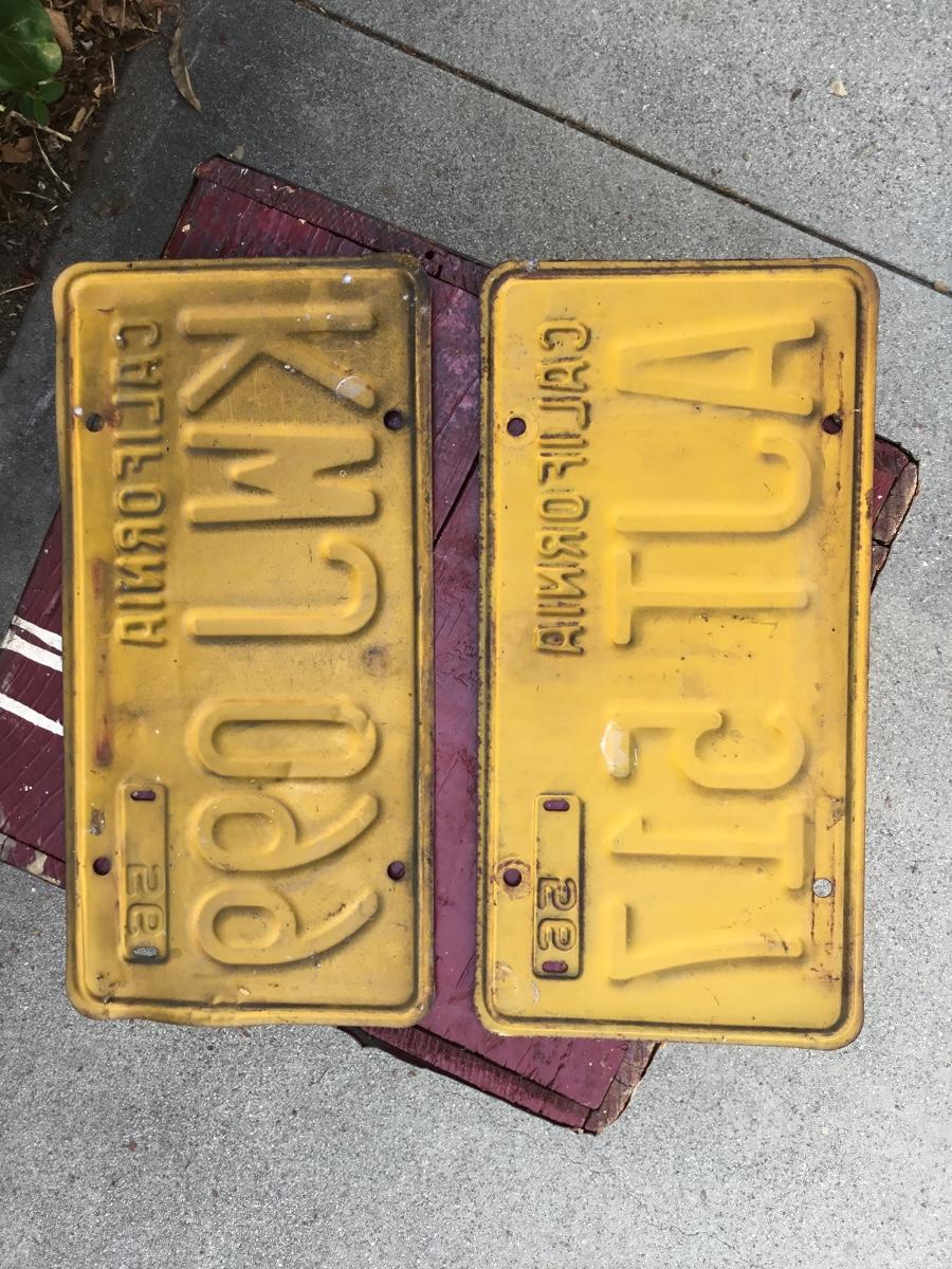 Vintage California Yellow and Black License Plates. Not matching. Good used condition. need to be cleaned.