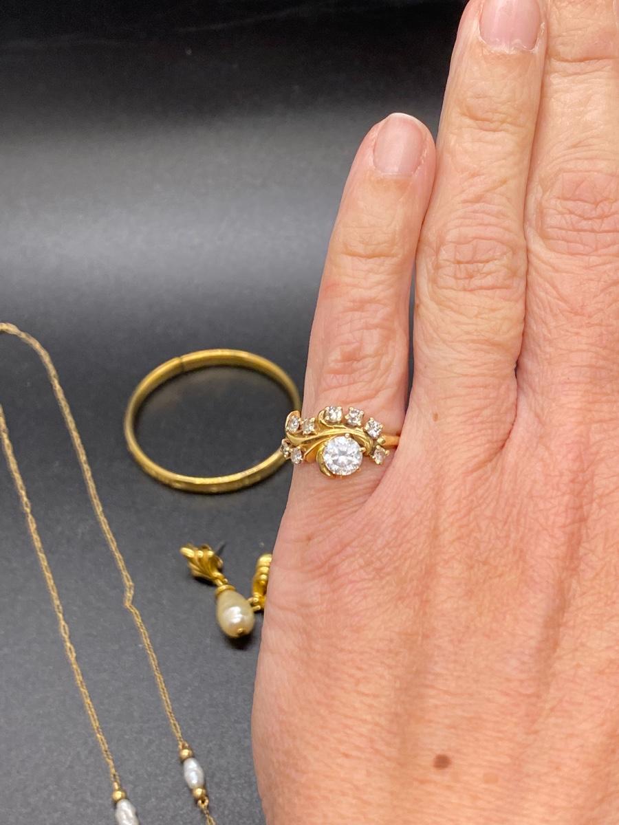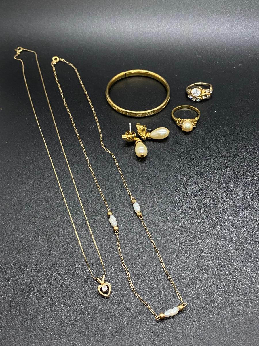 Mixed jewelry lot of gold fill/plated jewelry. Faux and freshwater pearl accents. Good conditions. Rings are a size 7 and smaller
