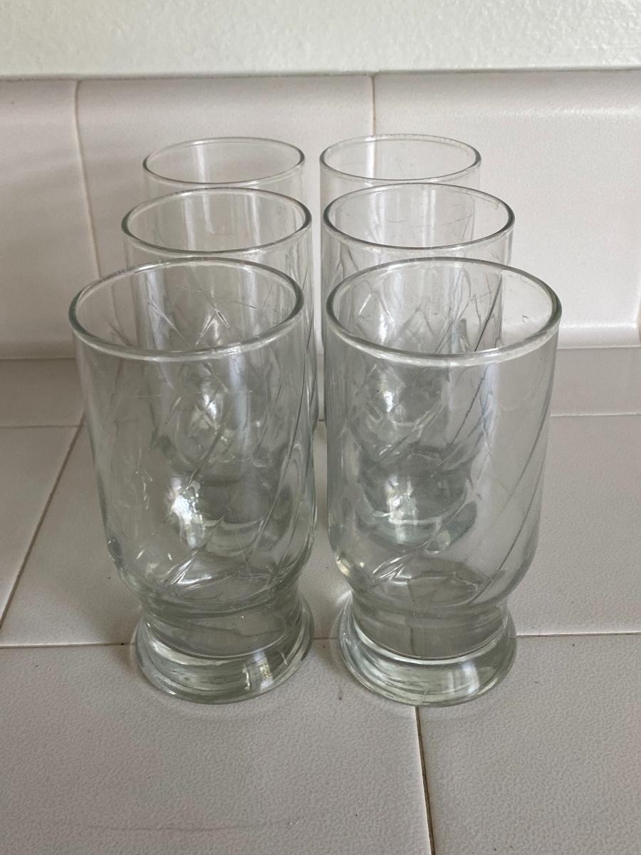 Set of 6 Swirl Design Drink Glasses. Good condition.