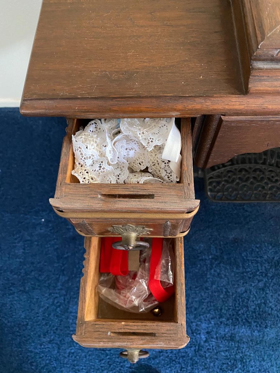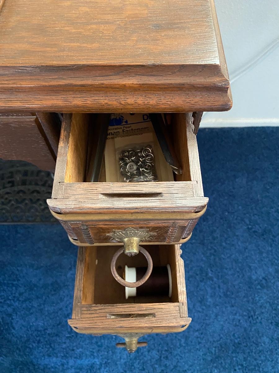 Vintage Treadle Foot Sewing Machine Table with Accessories NO MACHINE