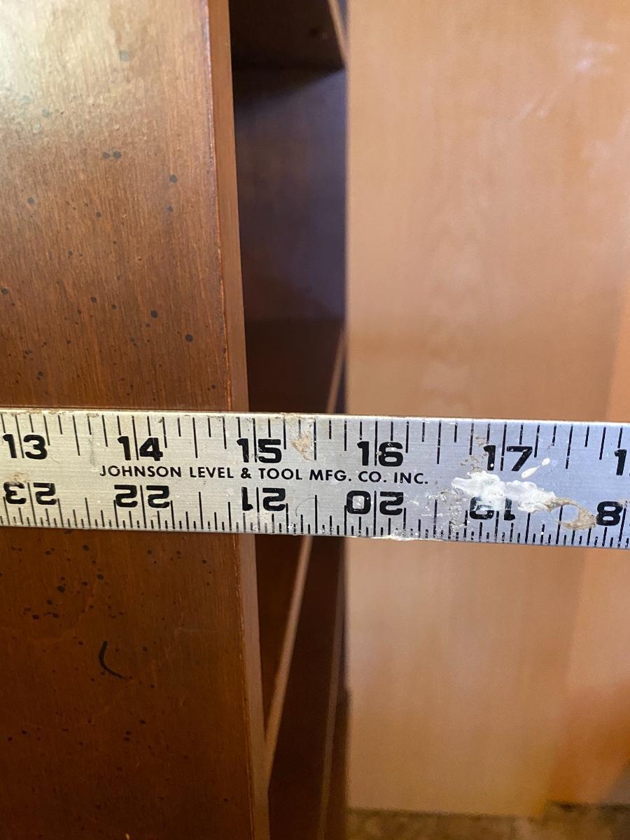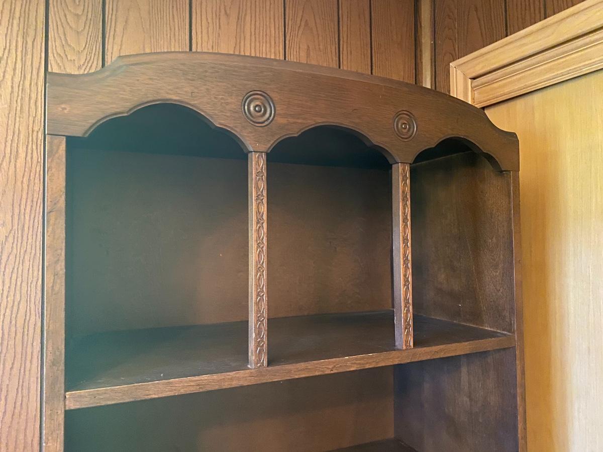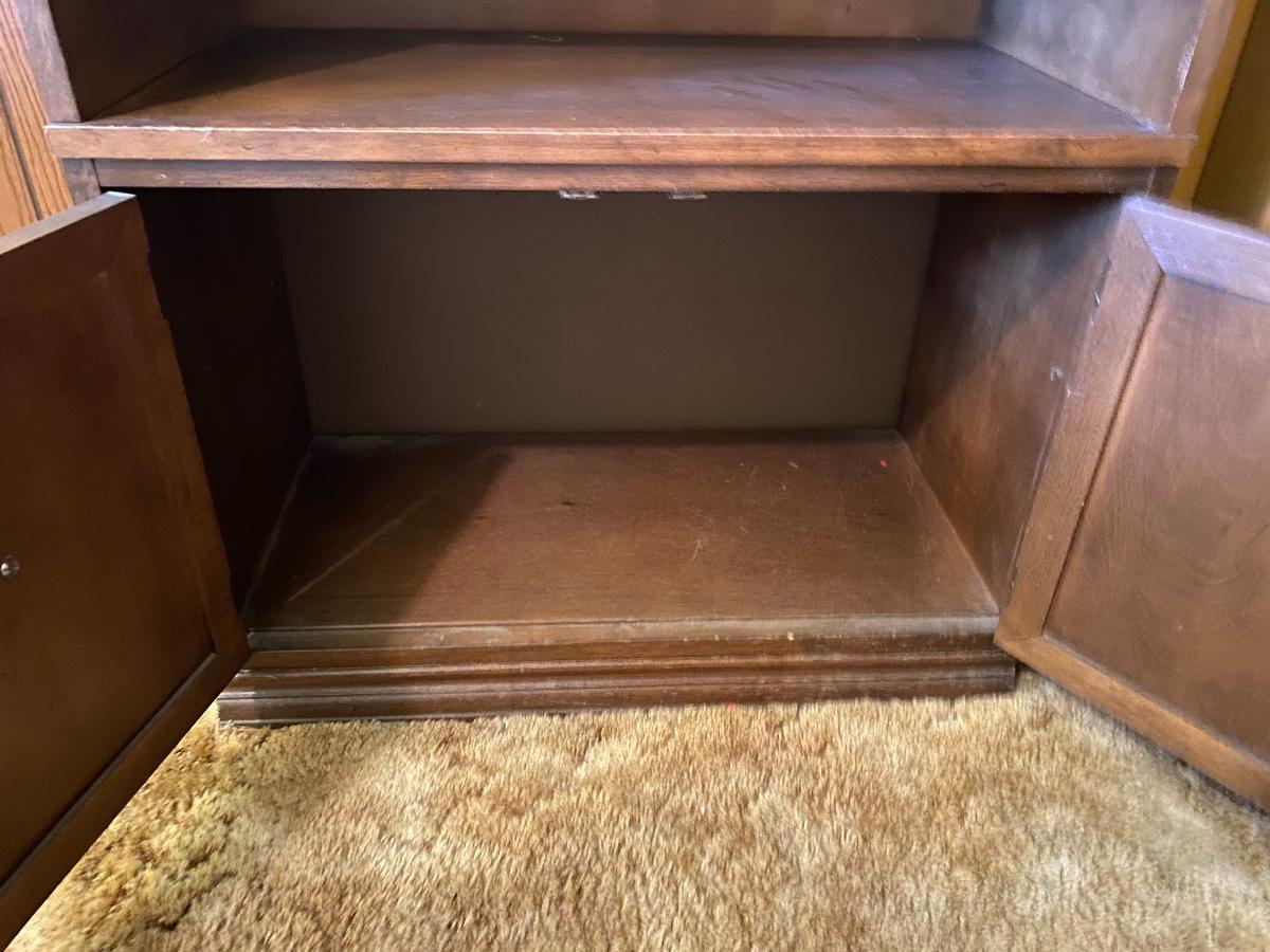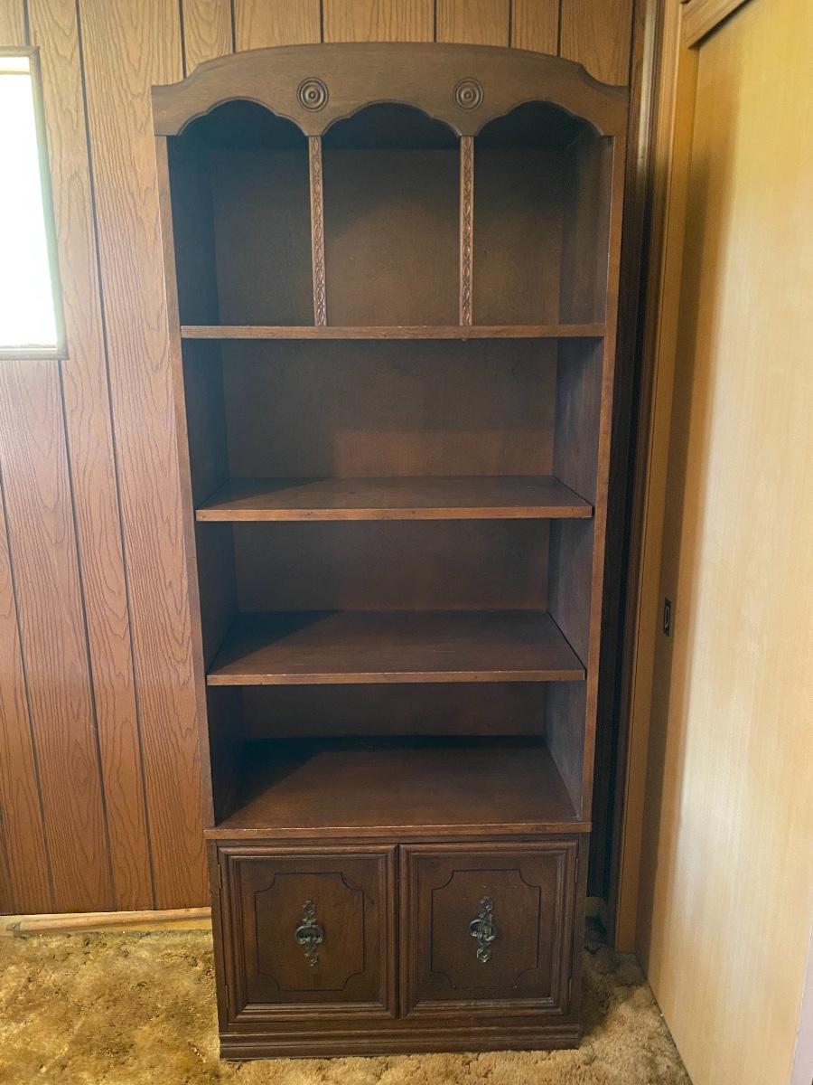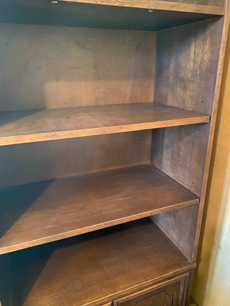 Vintage Adjustable Shelf Book Case. Two adjustable shelves and a lower small cabinet. About 6.5' tall