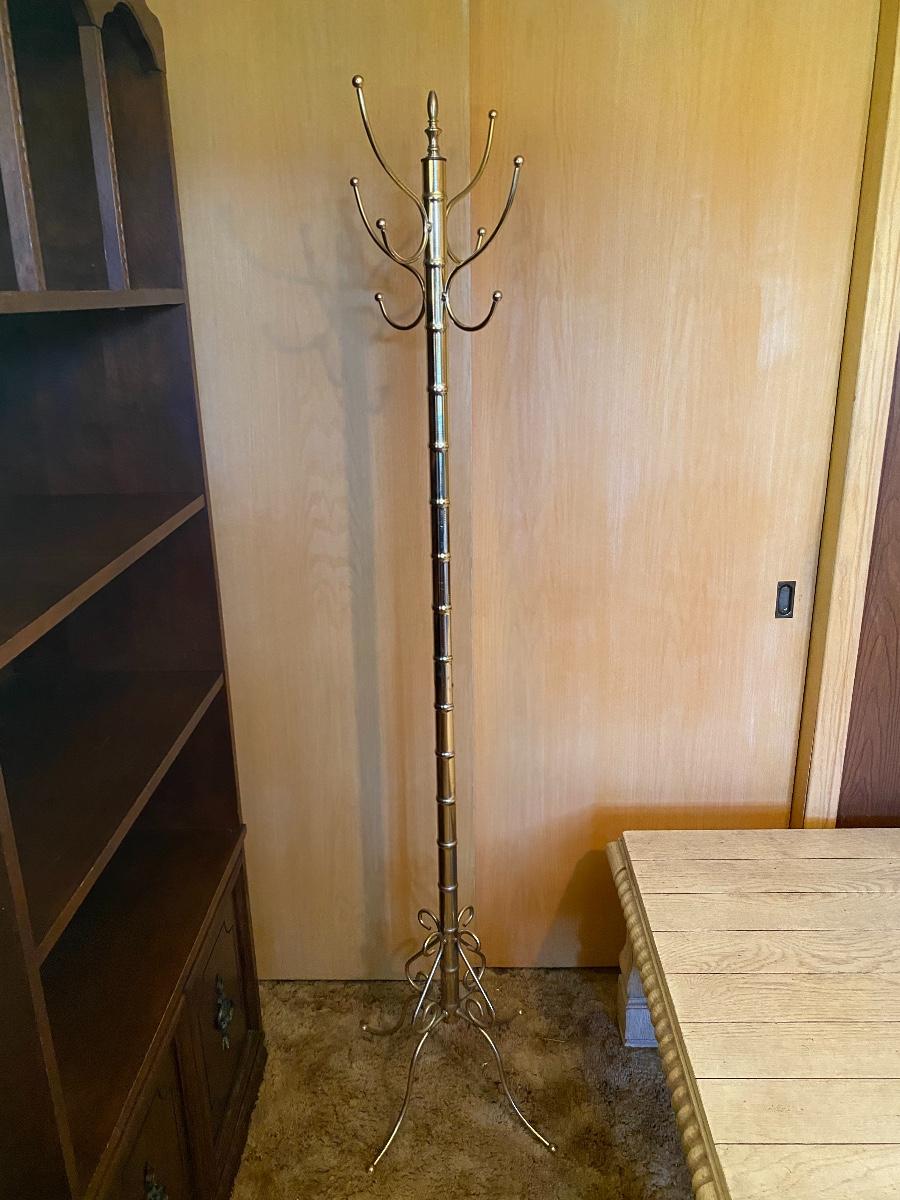 Vintage Brass Faux Bamboo Hat Coat Standing Rack Tree. Over 5' tall. One solid piece, does not come apart.