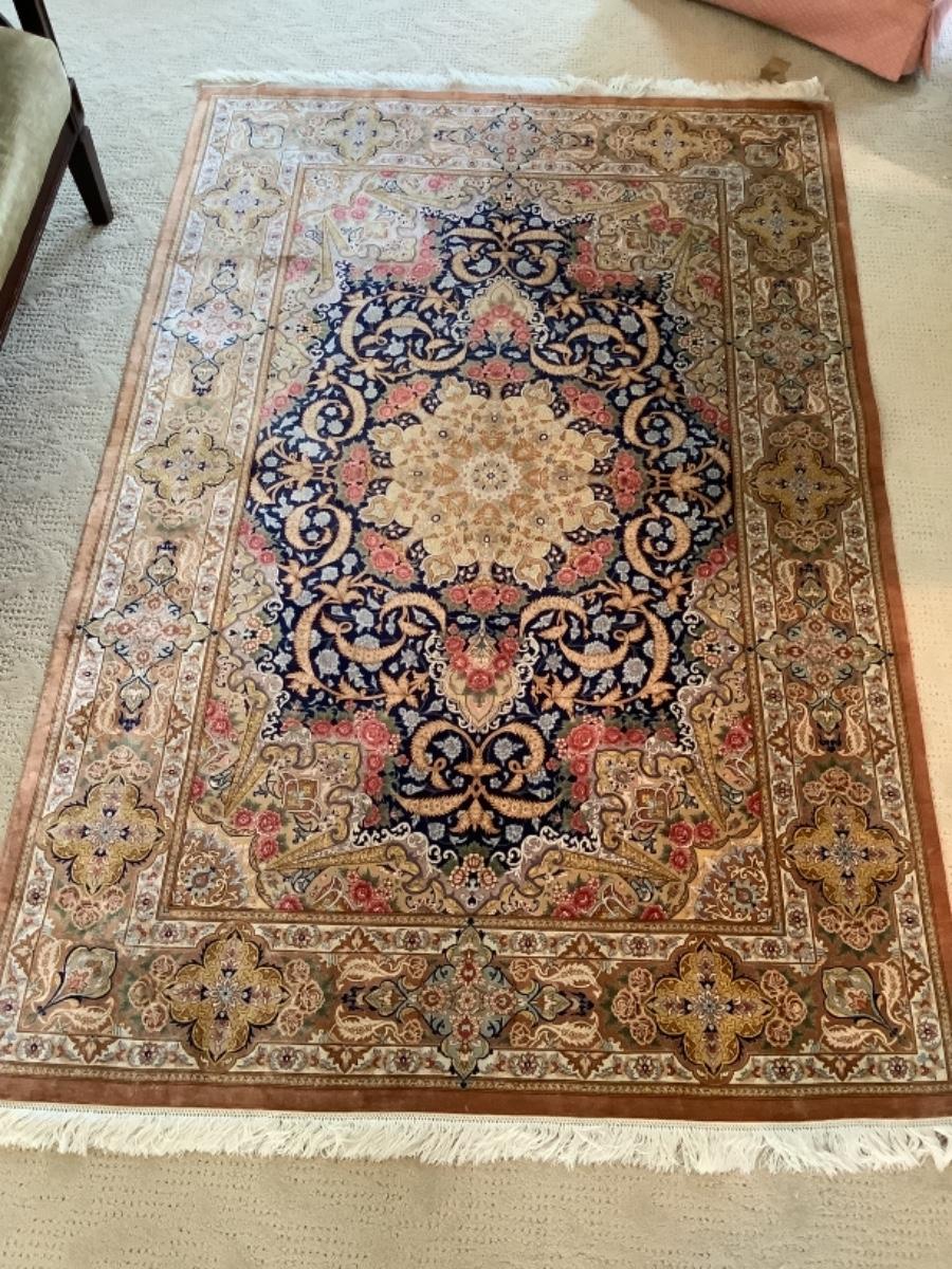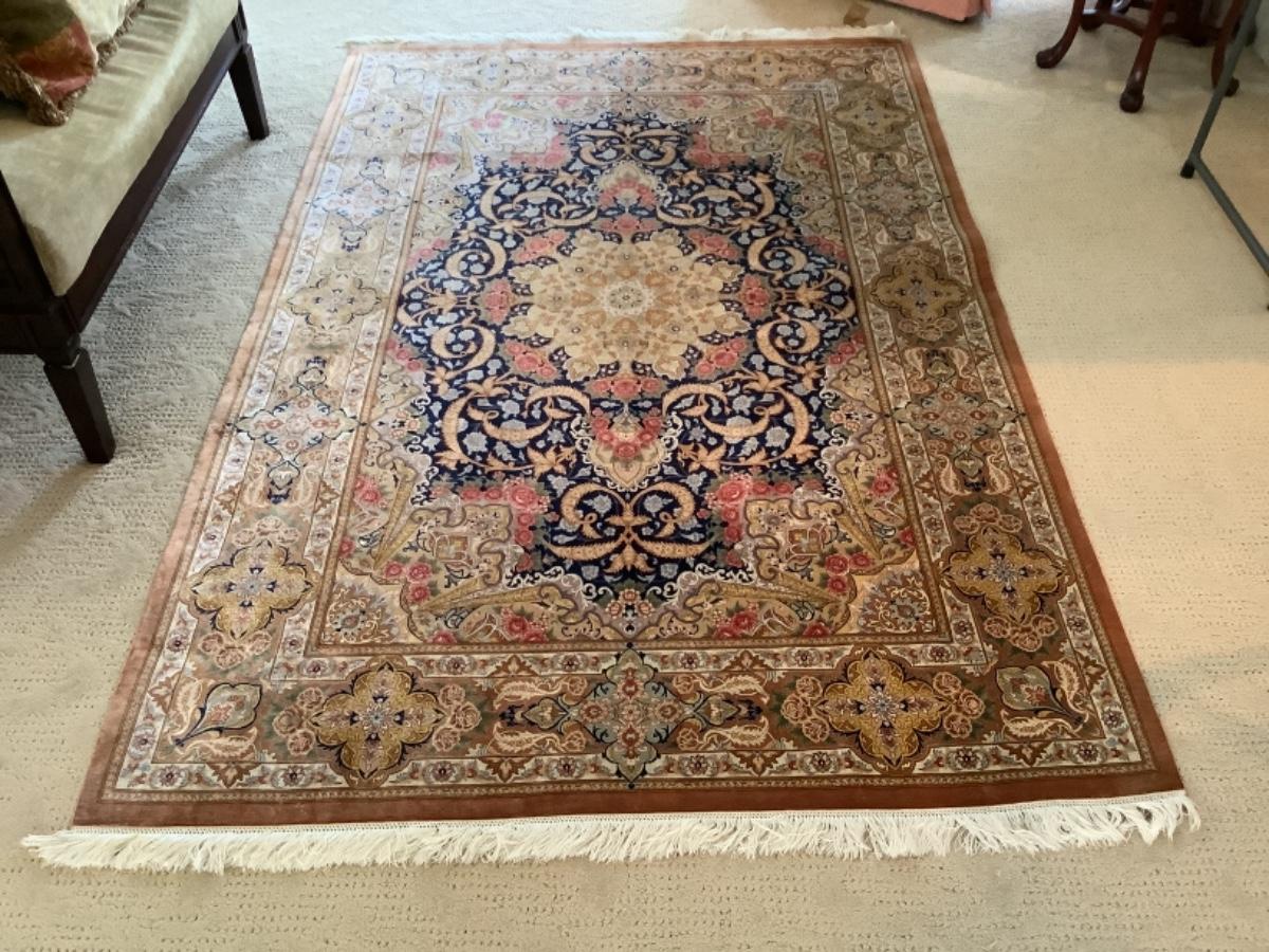 J 681. Signed Hand Knotted Persian Ghoum Silk Rug ( 6’ 9” x 4’ 6” )