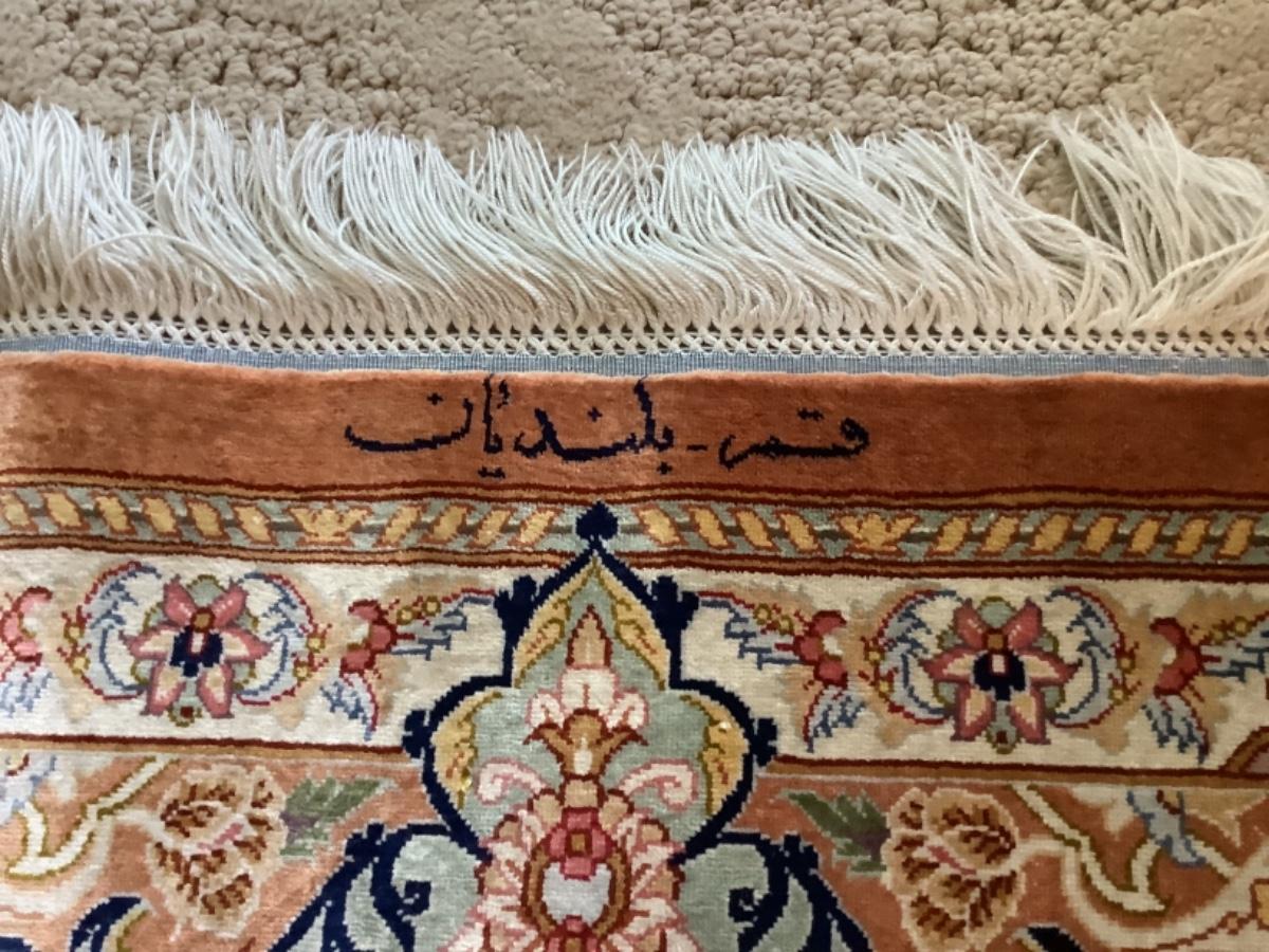 Signed Hand Knotted Persian Ghoum Silk Rug, from Iran -