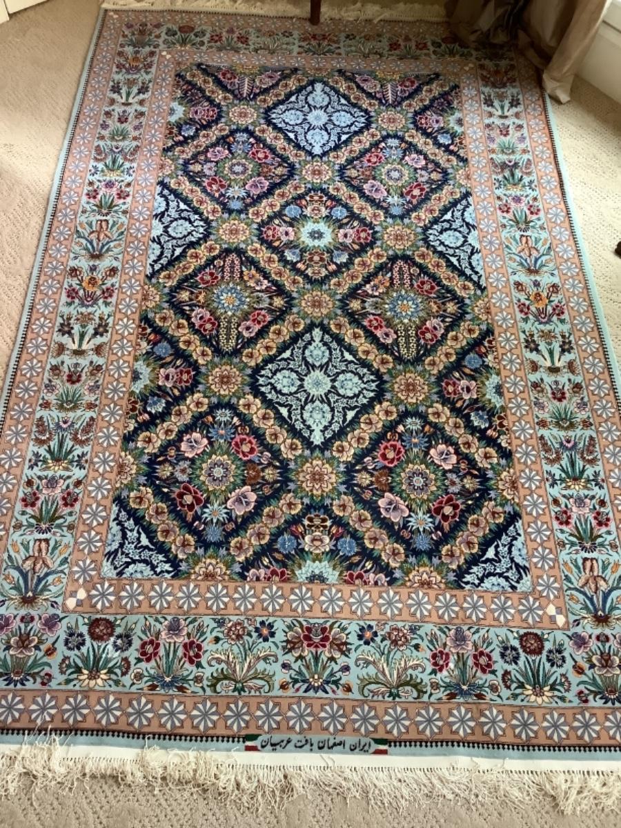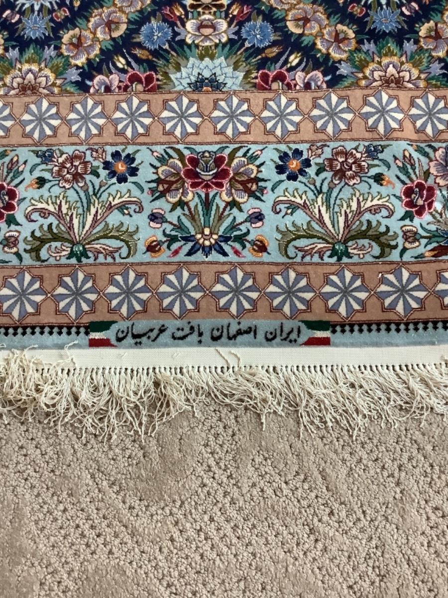 Signed Hand Knotted Persian Isfahan Wool Rug from Iran