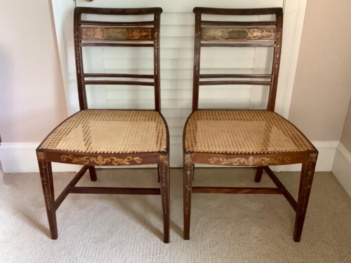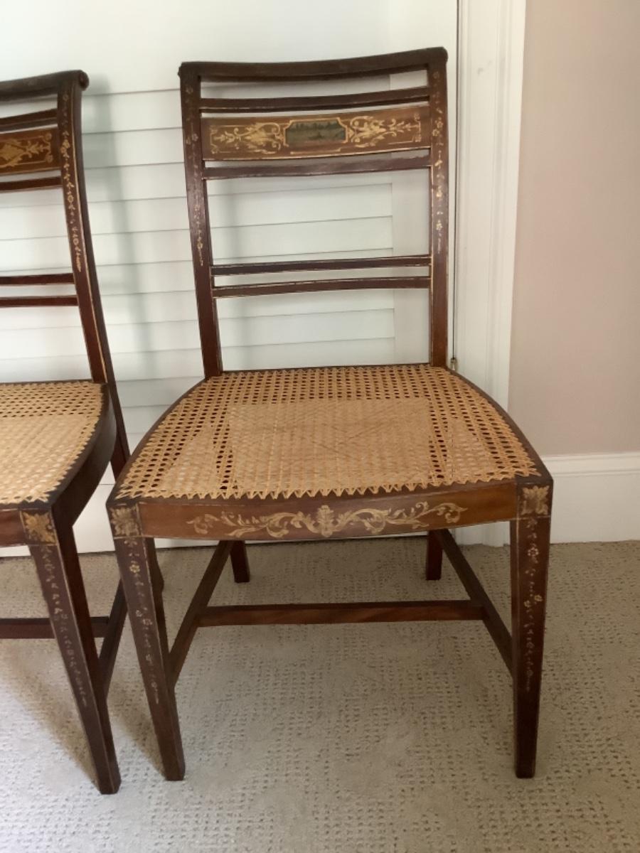 J. 683 Pair of Antique Gold Stenciled Cane Seat Chairs