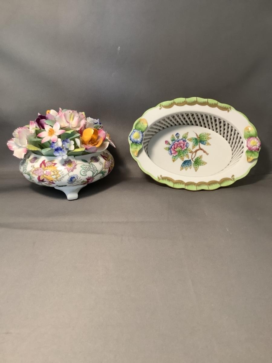 Herend, Reticulated Hand Painted Oval Dish - 5.5” x 4”