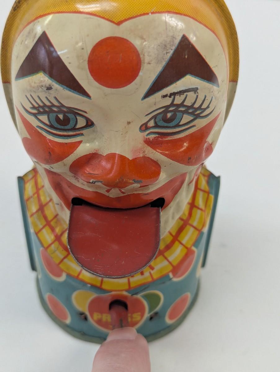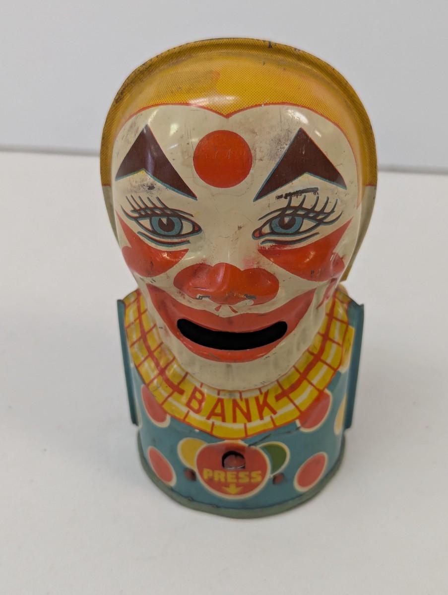 J, Chein Tin Litho Clown Mechanical Savings Bank