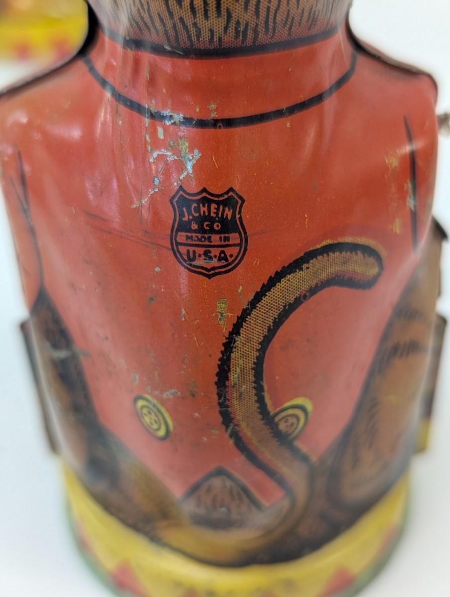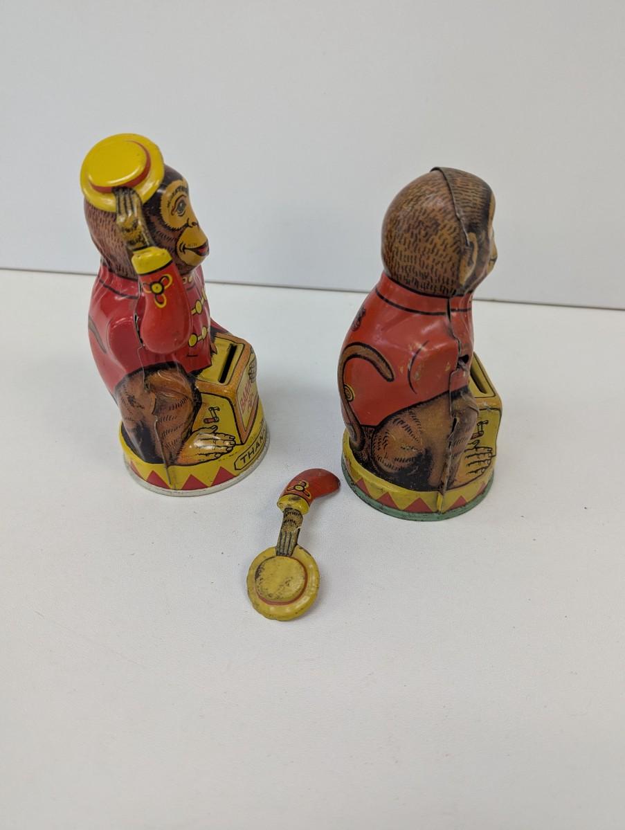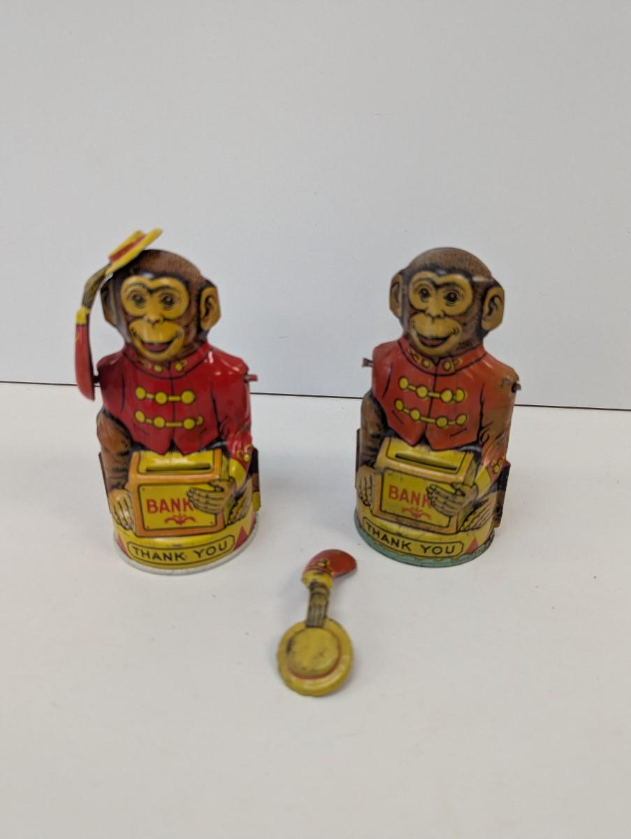 J, Chein Tin Litho Monkey Tipping Hat Mechanical Savings Bank