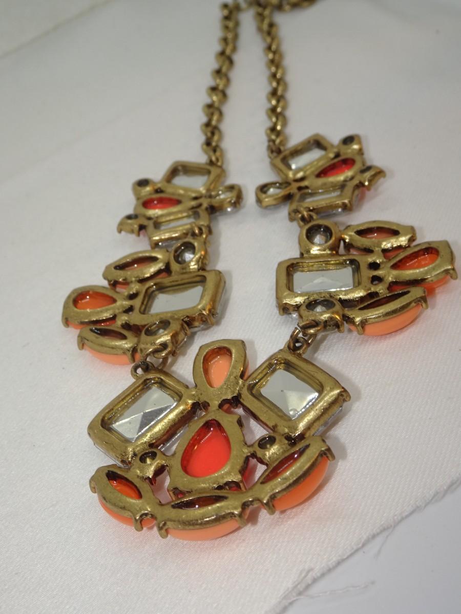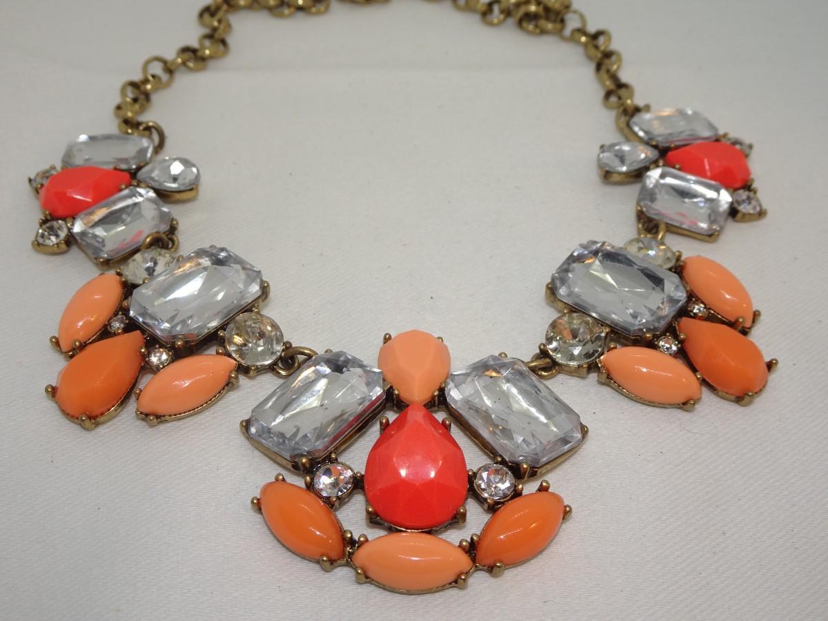 J. Crew Melon & Orange Rhinestone Statement Necklace