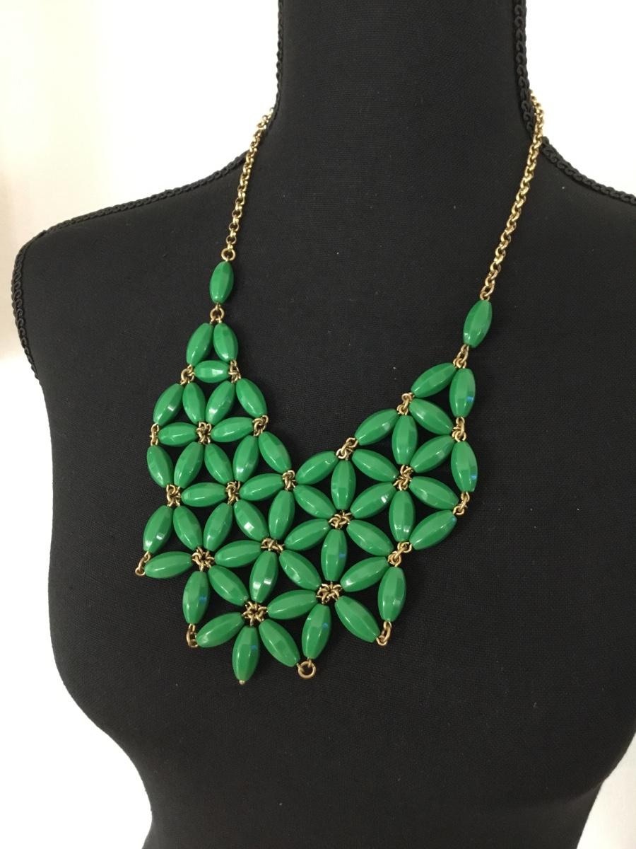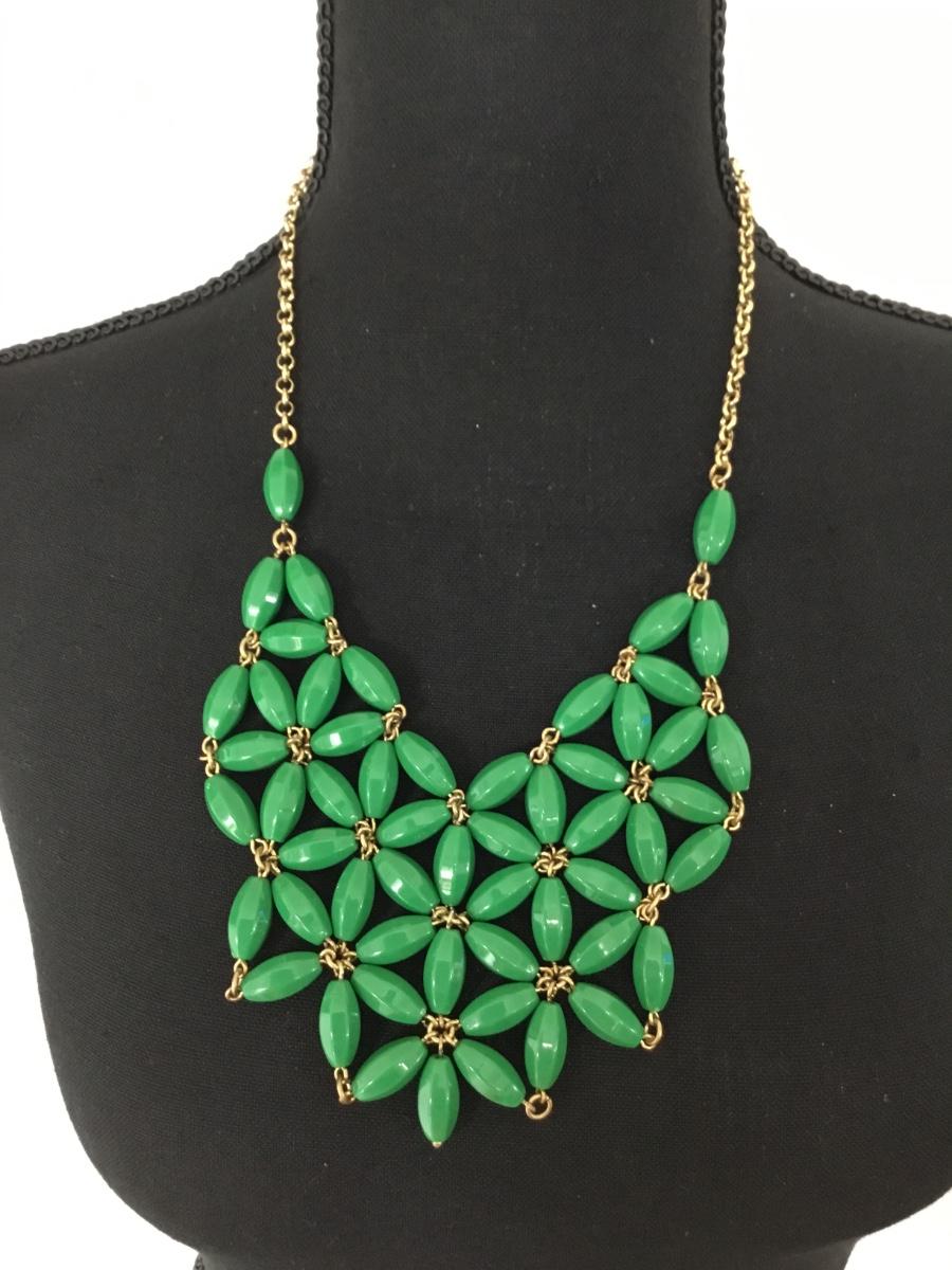 J Crew Vintage Bib Statement Necklace Green Beaded 18" Adjustable Signed