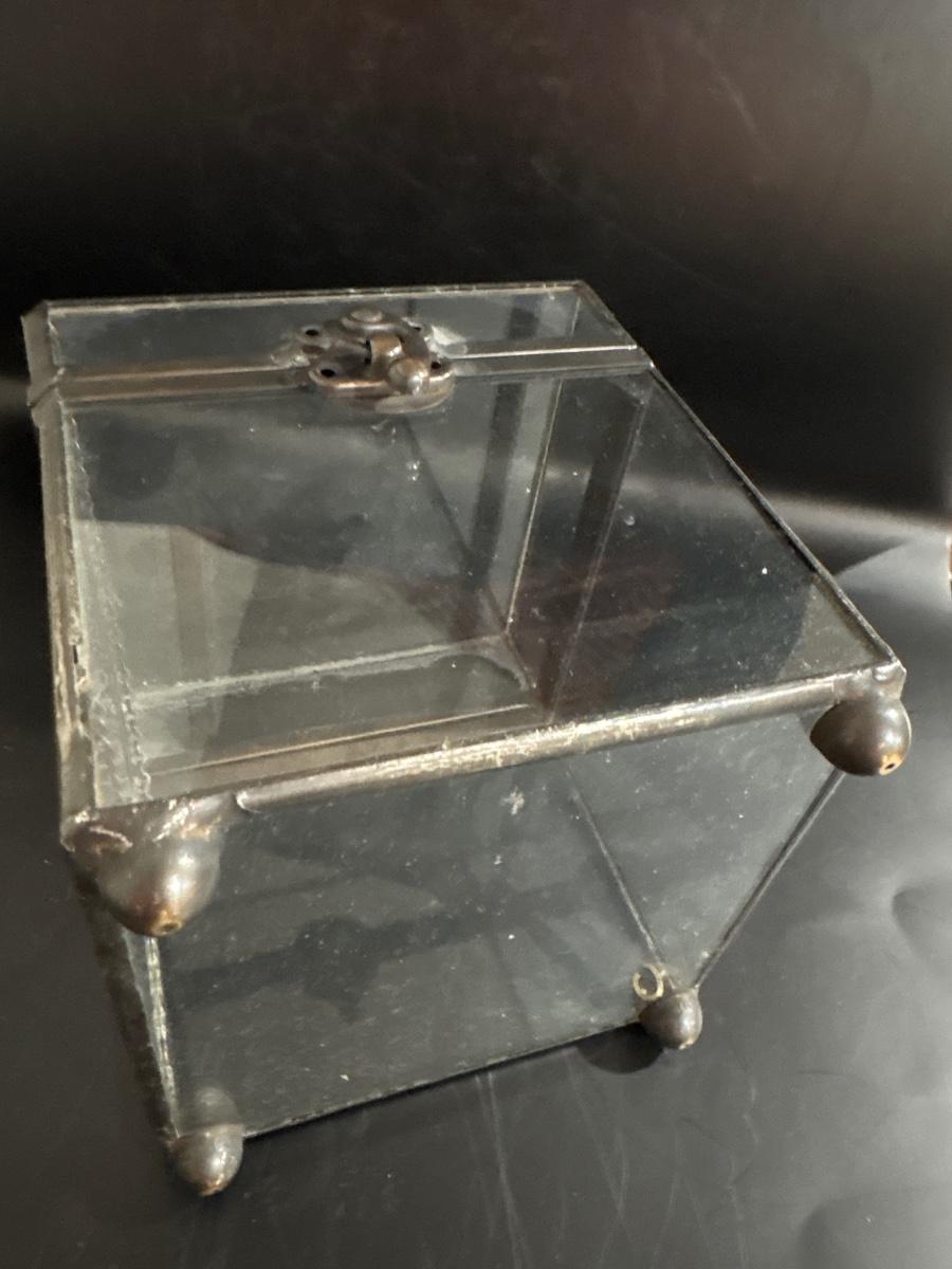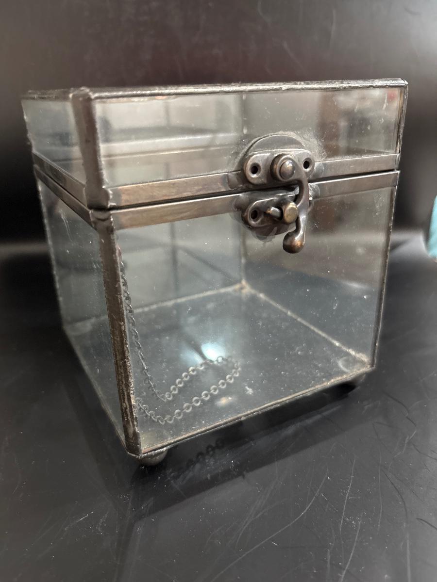 Hinged led free soldered art glass keepsake box designed by Devlin Glass Art.