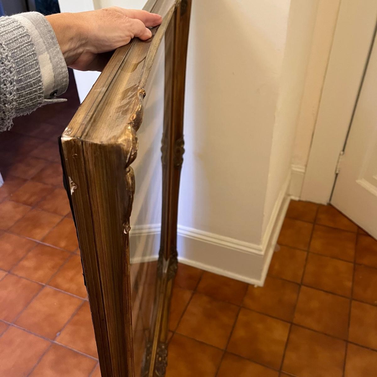 Lovely J F Goodman Painting is matted, framed and under glass in a beautiful gold ornate frame. The painting is signed by the artist and measures approx 37” x 48”H. There are signs of wear on the frame. See pictures for details. Shipping available. *Shipping can be costly. We suggest contacting our preferred local shipping provider, Postage Express, with dimensions and getting an estimate before bidding: (828) 255-9250 or shipping@postageexpressnc.com.
