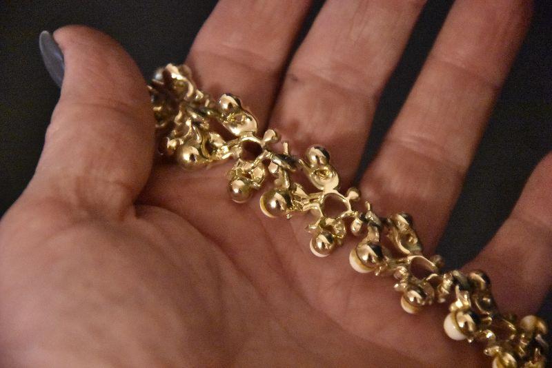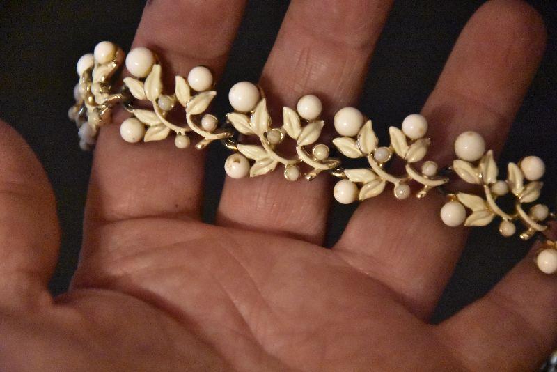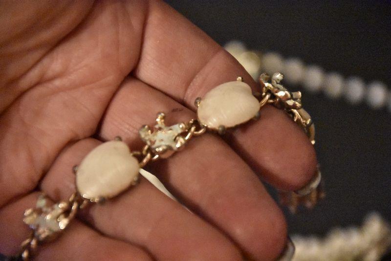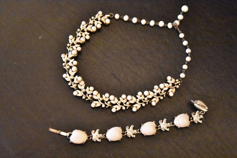 Necklace and bracelet with white stones