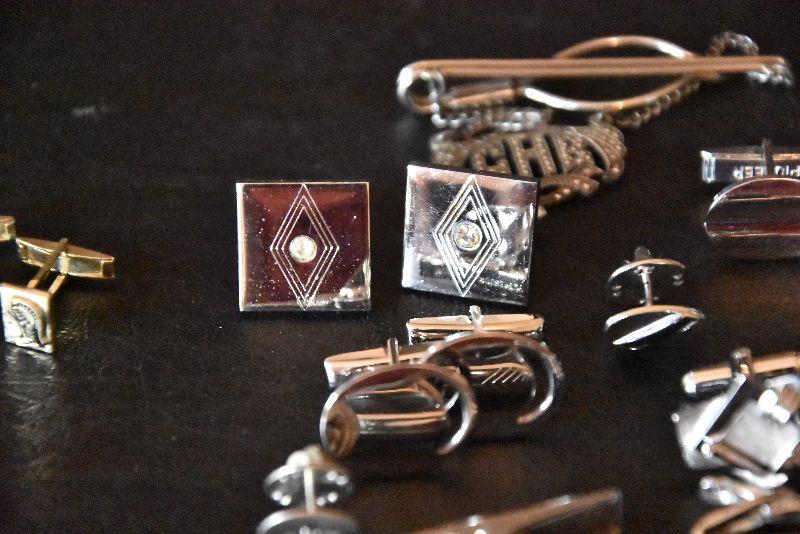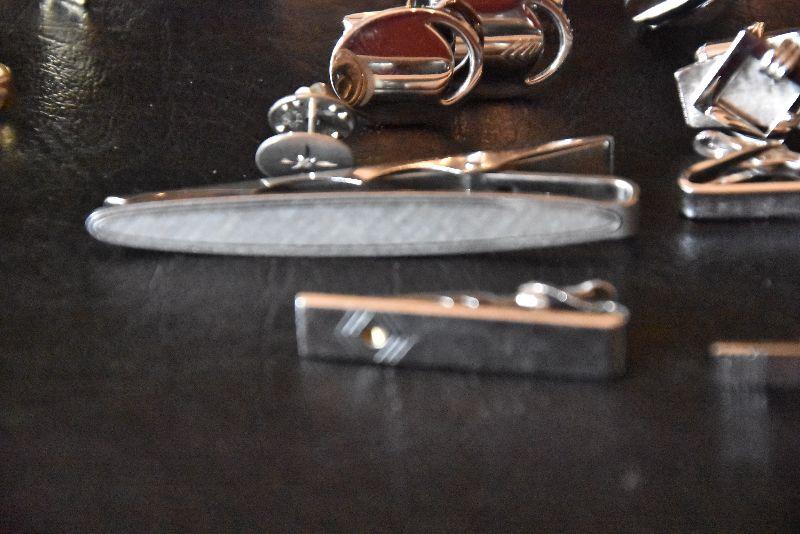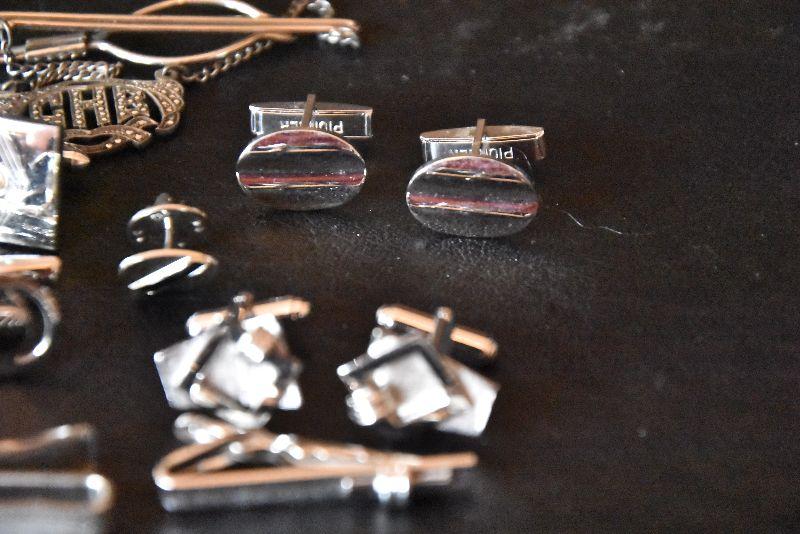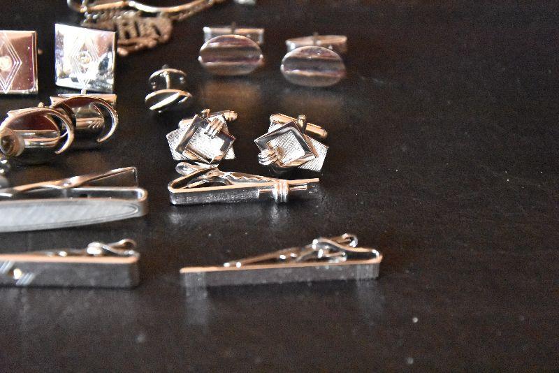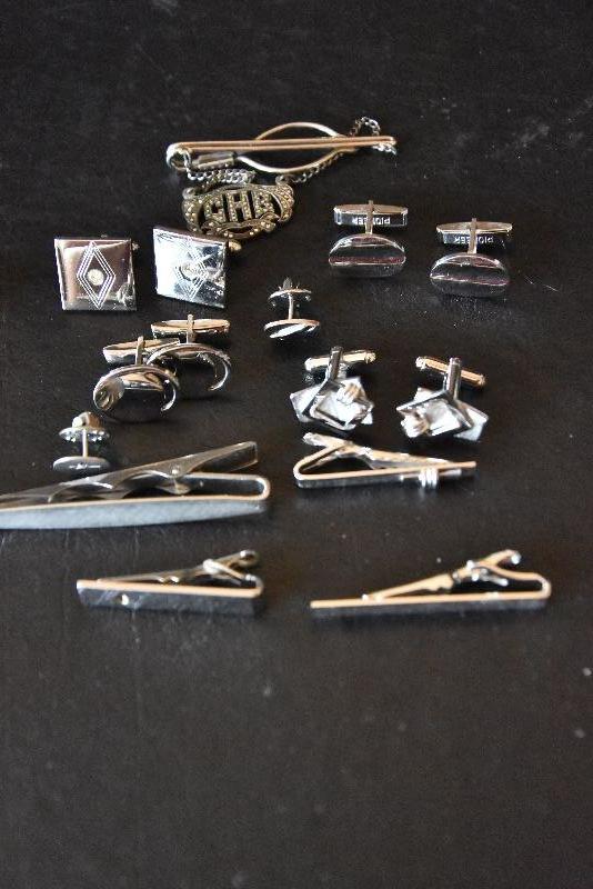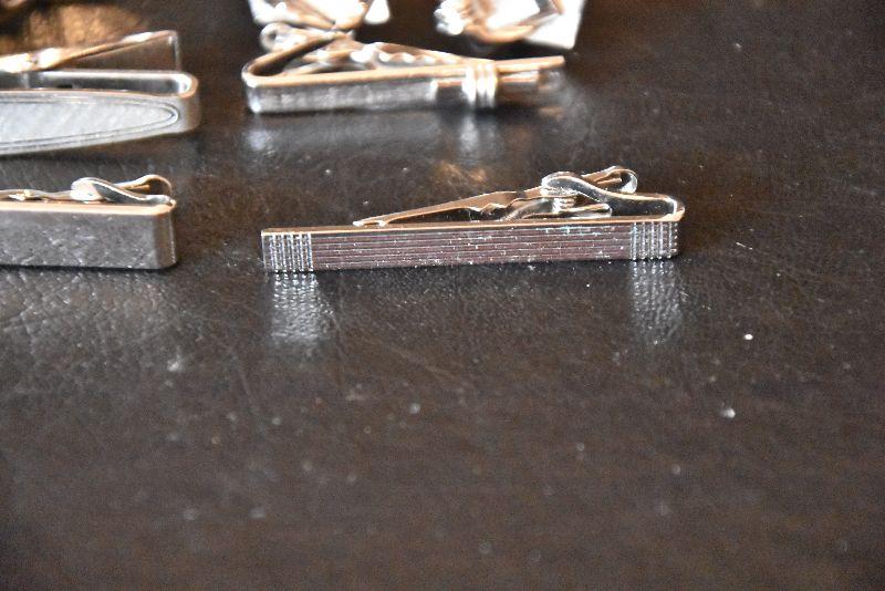 Silvertone tie clips and cufflinks