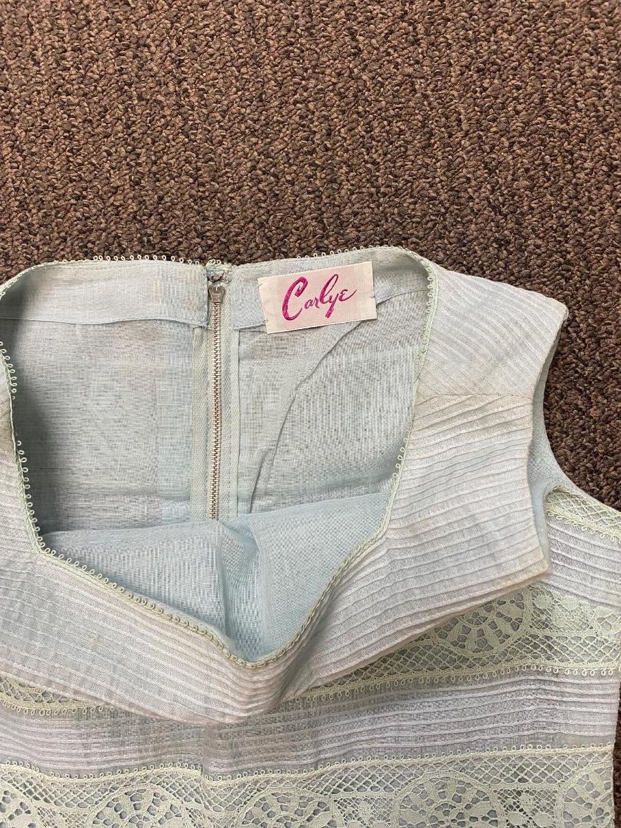 Vintage Carlye Pale Turquoise Robin Egg Blue Zipper Back Summer Spring Sheath Dress