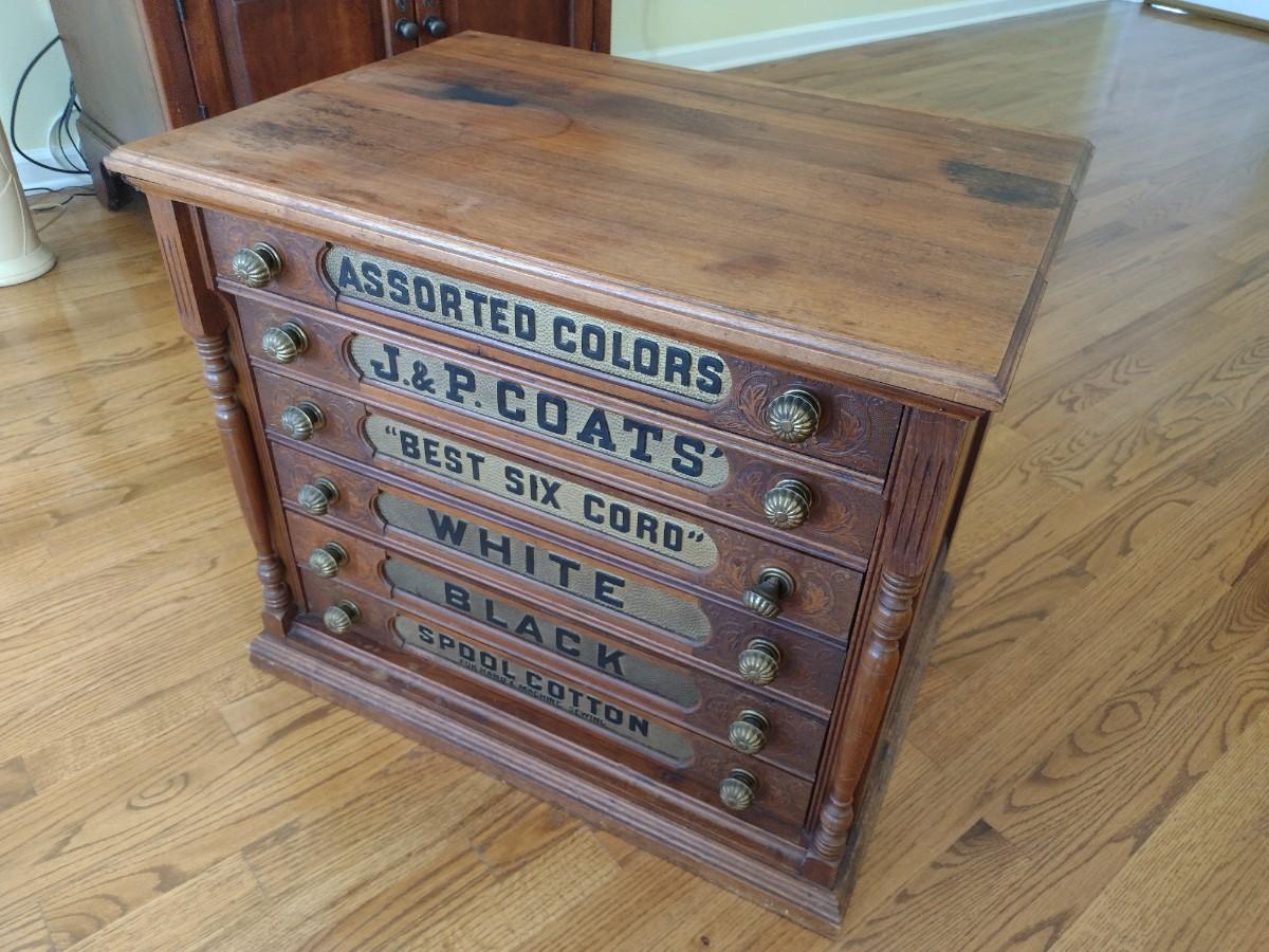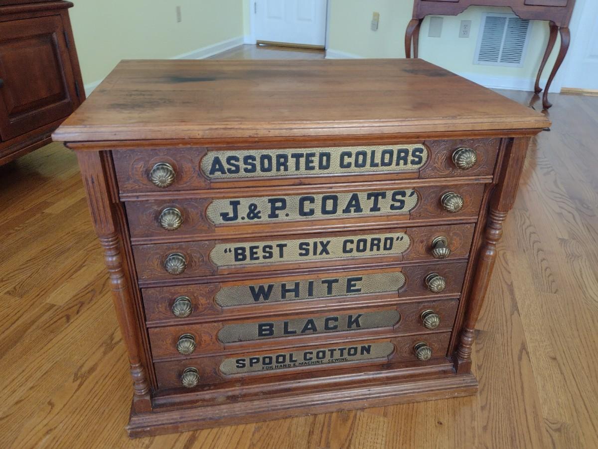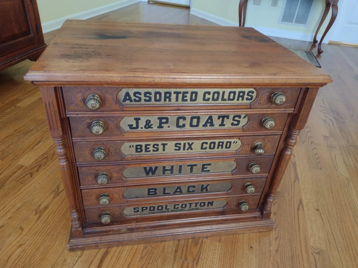 J & P Coats Antique Six Drawer Spool Cotton Cabinet
