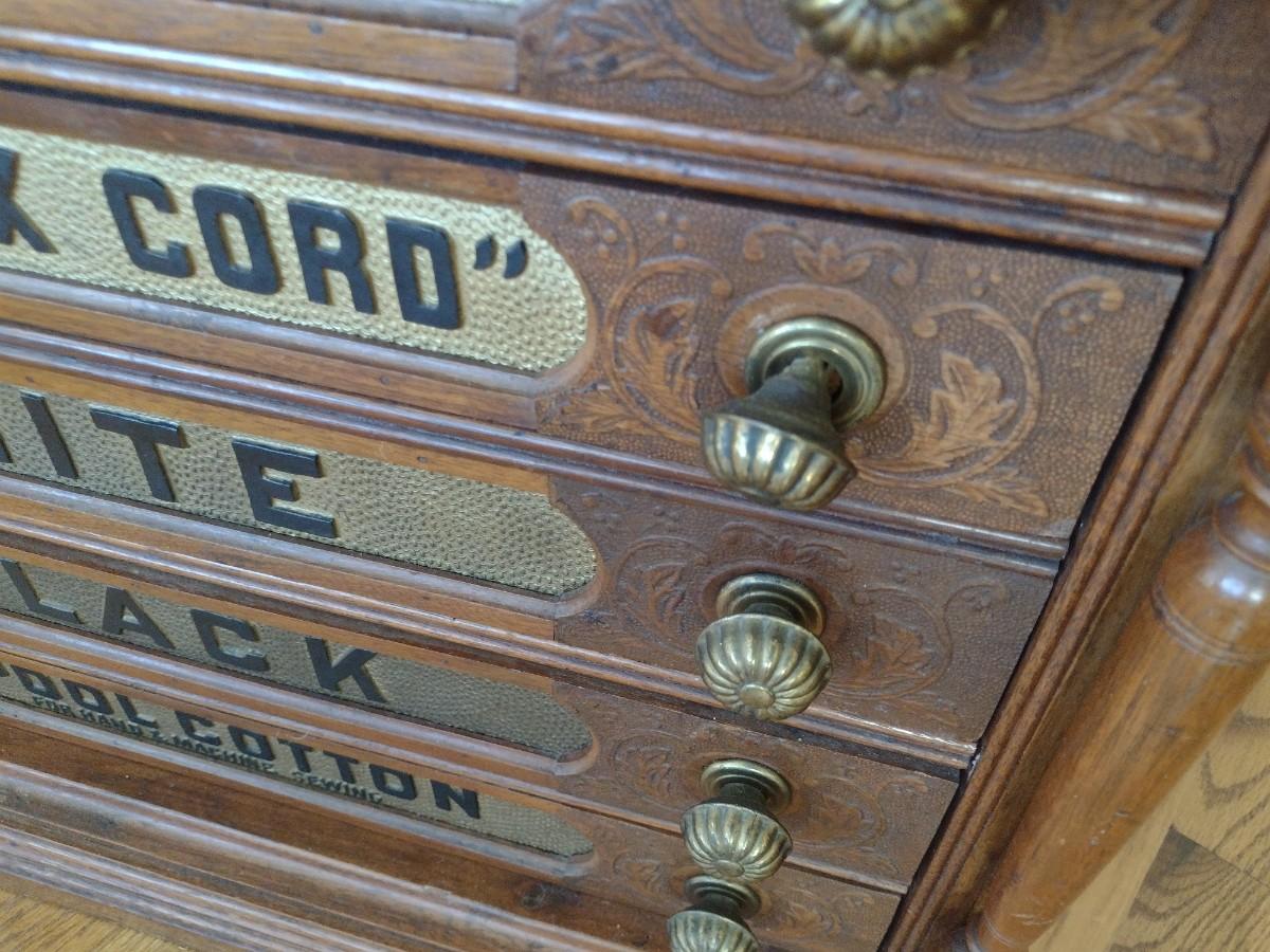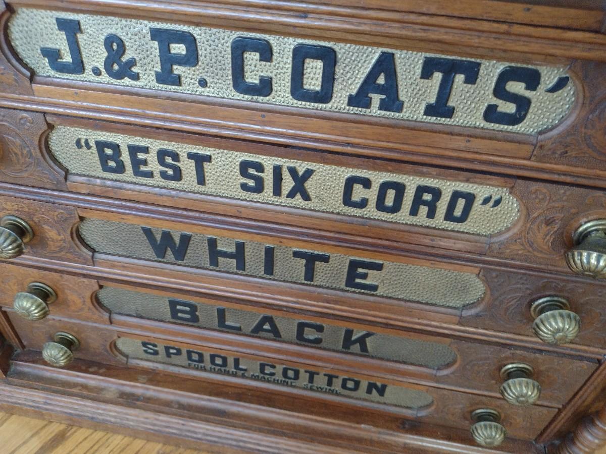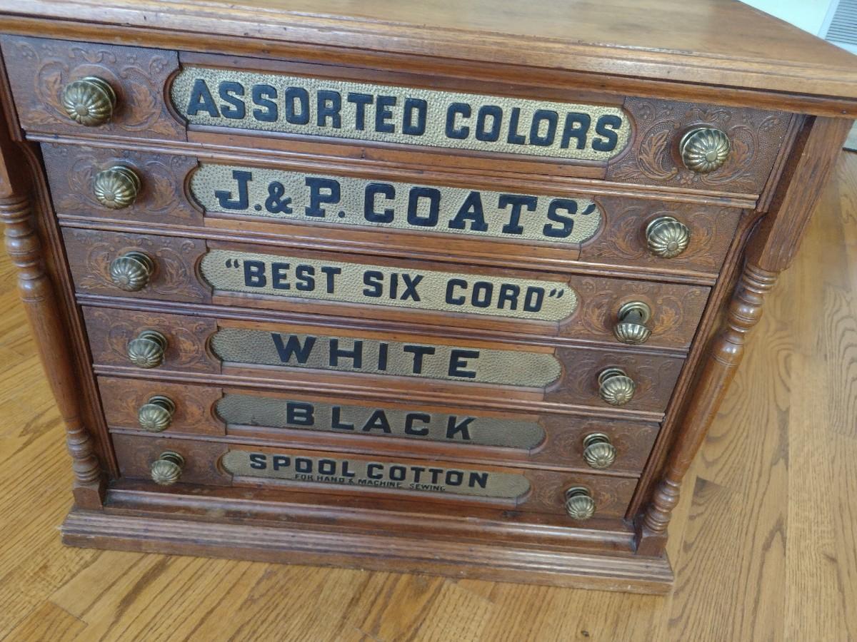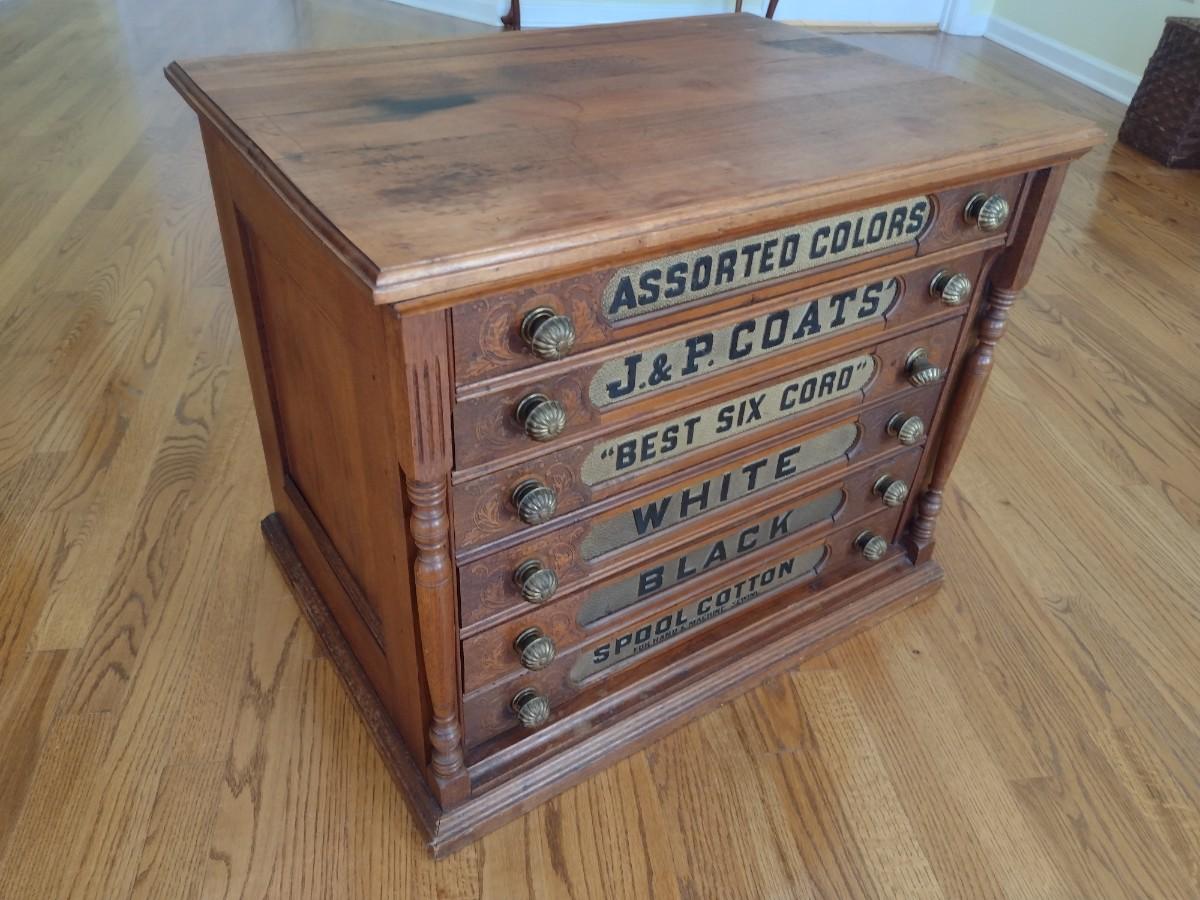J & P Coats Antique Six Drawer Spool Cotton Cabinet