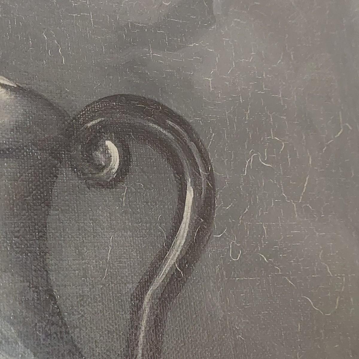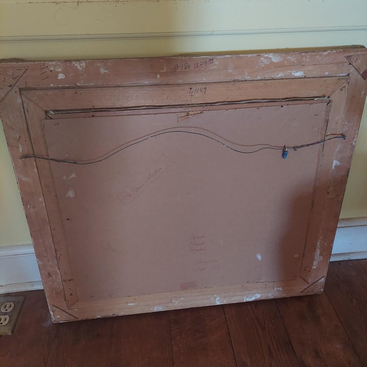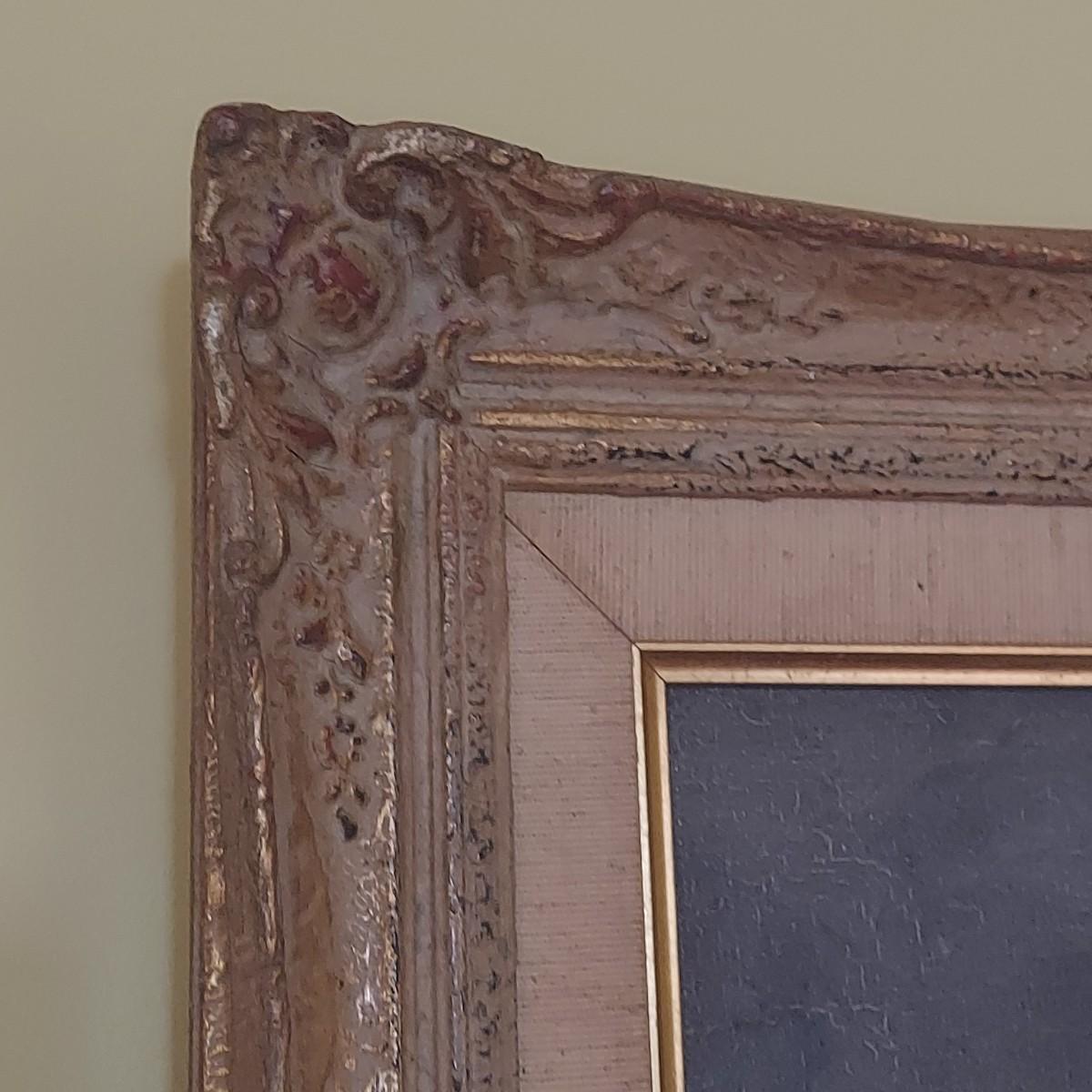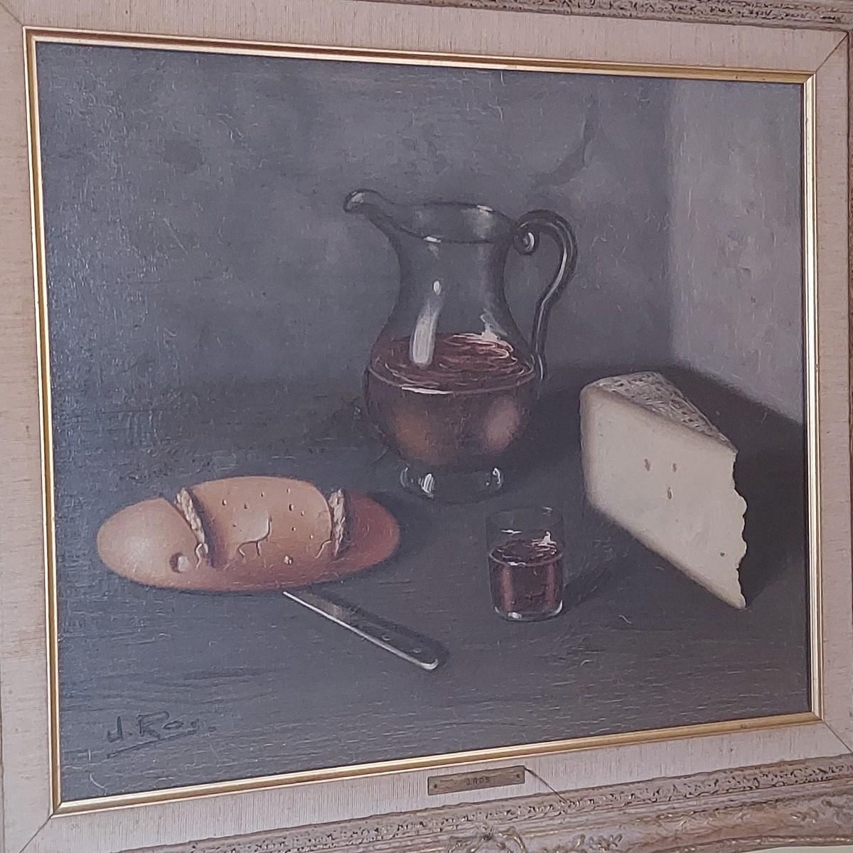 Original still life painting in carved wood frame. Appears to be oil on canvas. Some cracking. Back shows where it was cleaned and resealed in 1983. Frame measures approximately 29" x 25"H. Signed J. Ros. Shipping available. Shipping certain items can be costly. We suggest contacting our preferred local shipping provider, Postage Express, with dimensions and getting an estimate before bidding: (828) 670-5501 or postageexpress@yahoo.com.