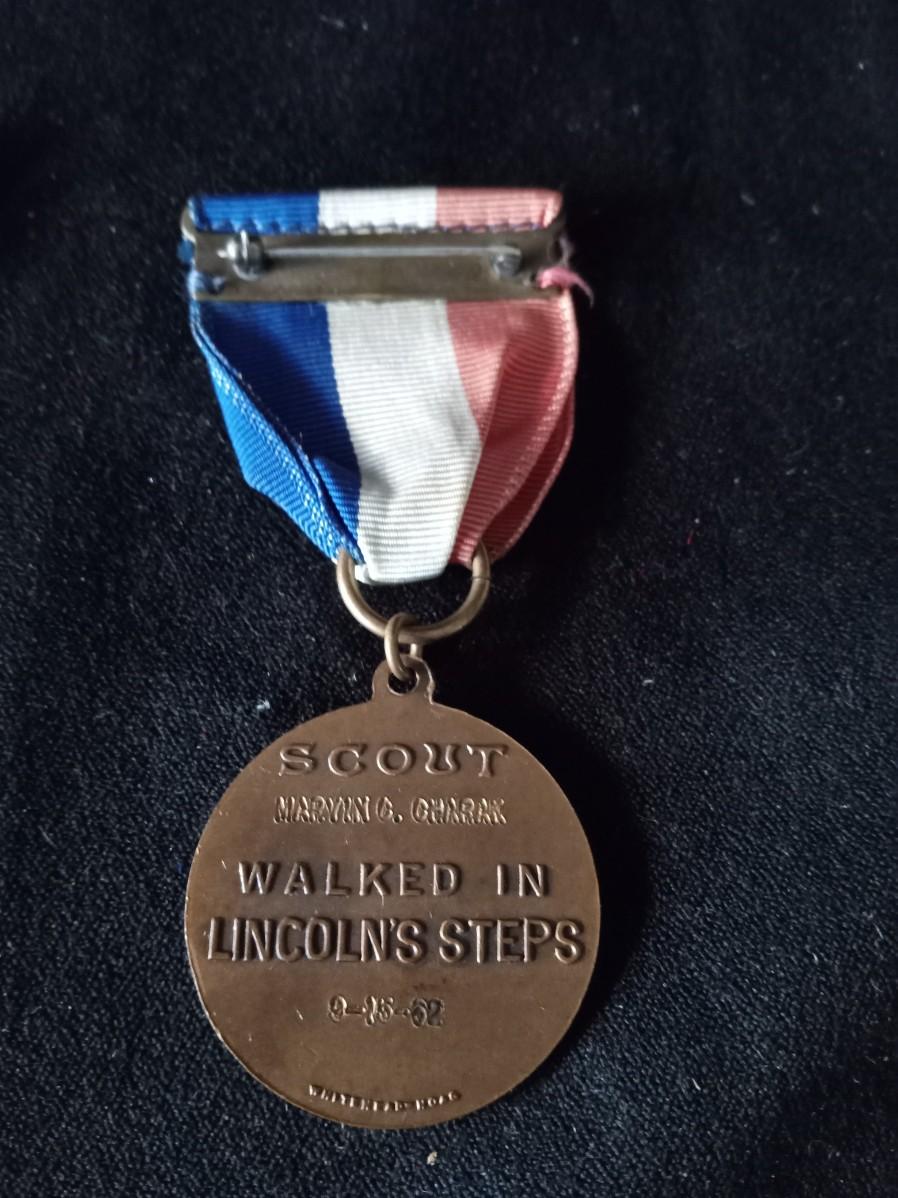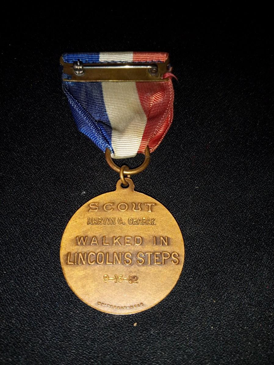 ABE LINCOLN BADGE MARKED SCOUT MARYIN C CHARAK WALKED IN LINCOLN'S STEPS