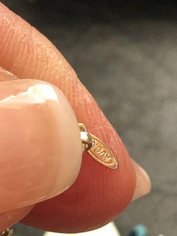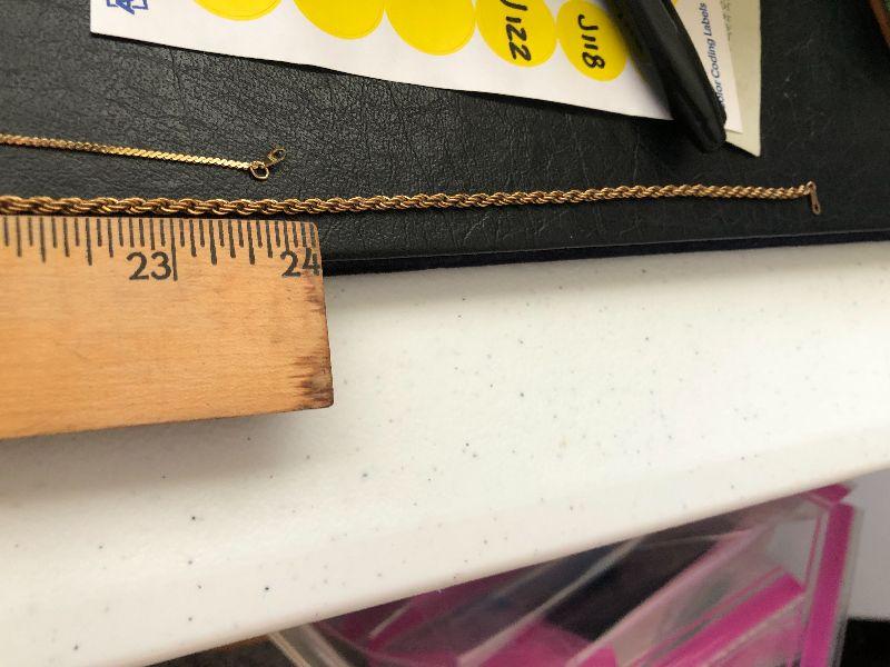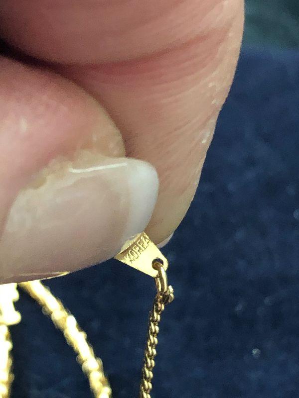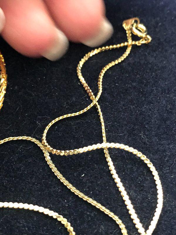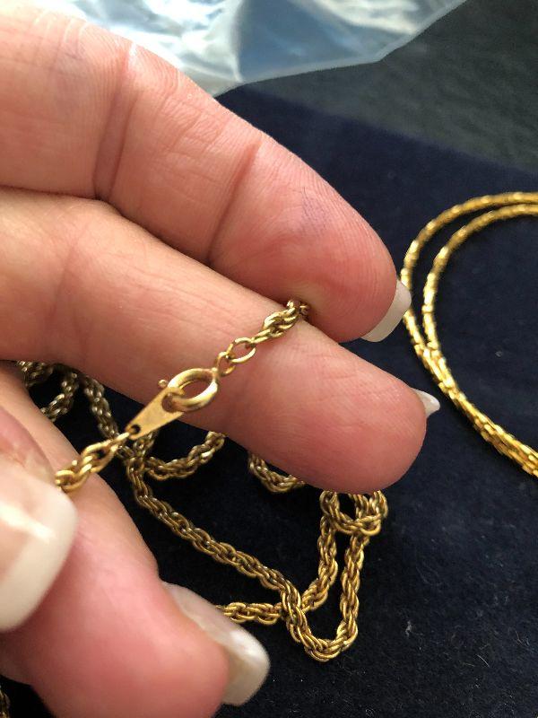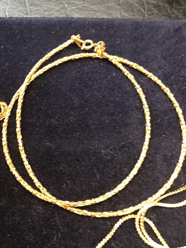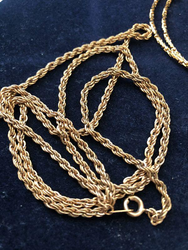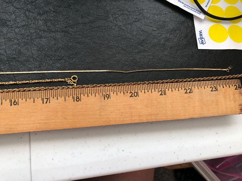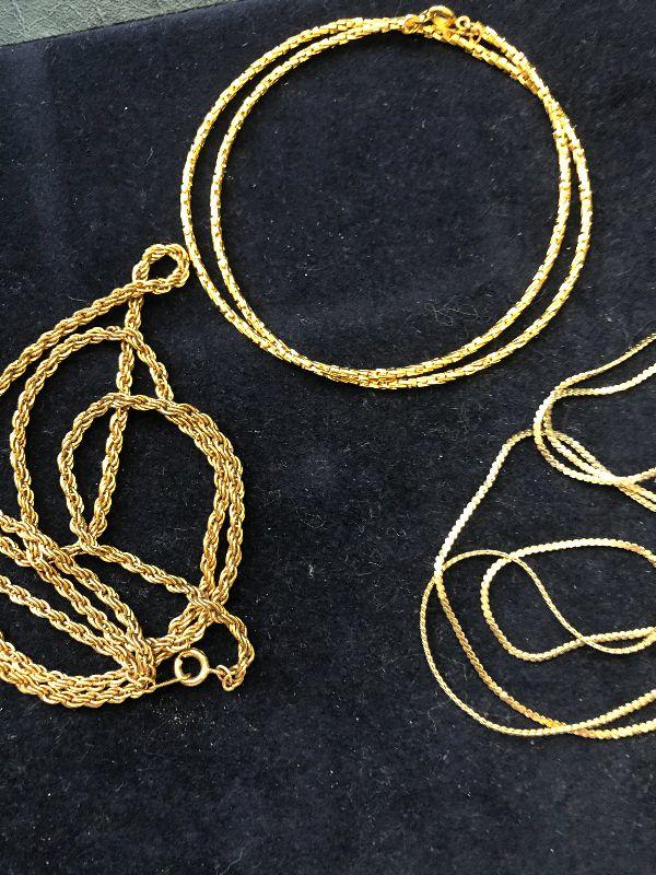 Three gold tone necklaces.