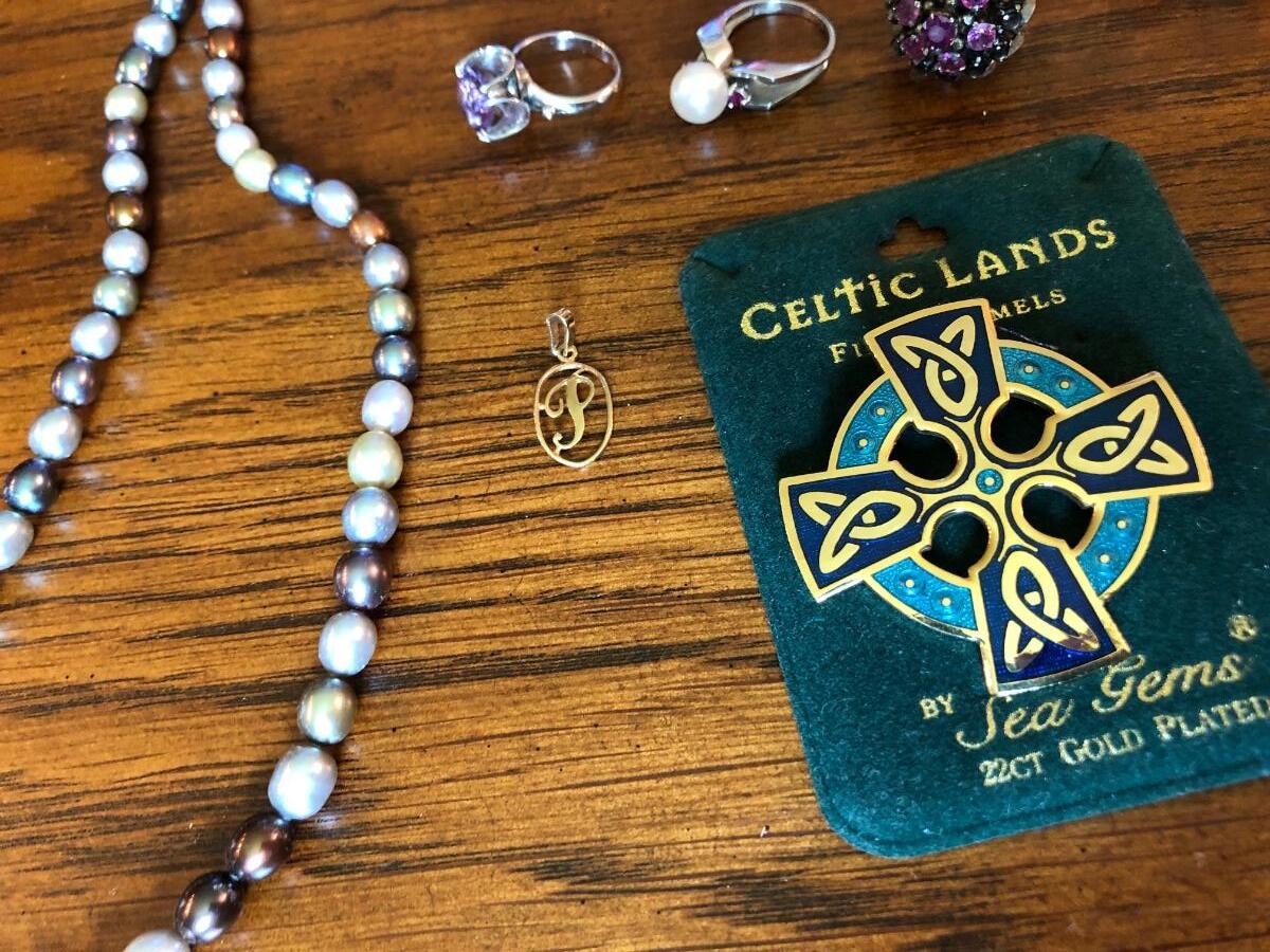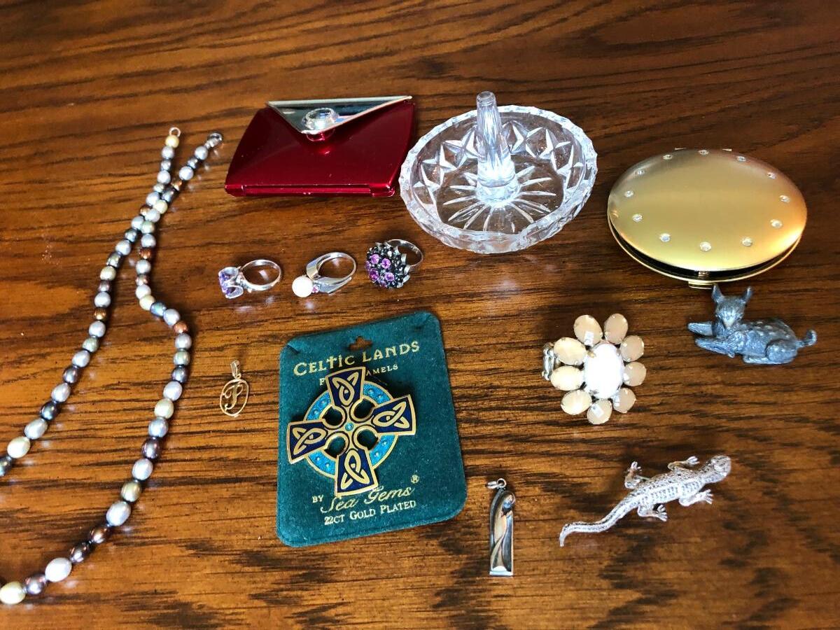 J11- Rings, pins, pendants, necklace, compact mirrors