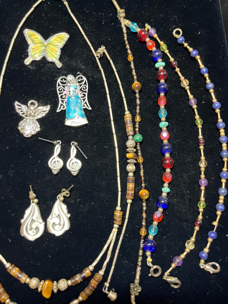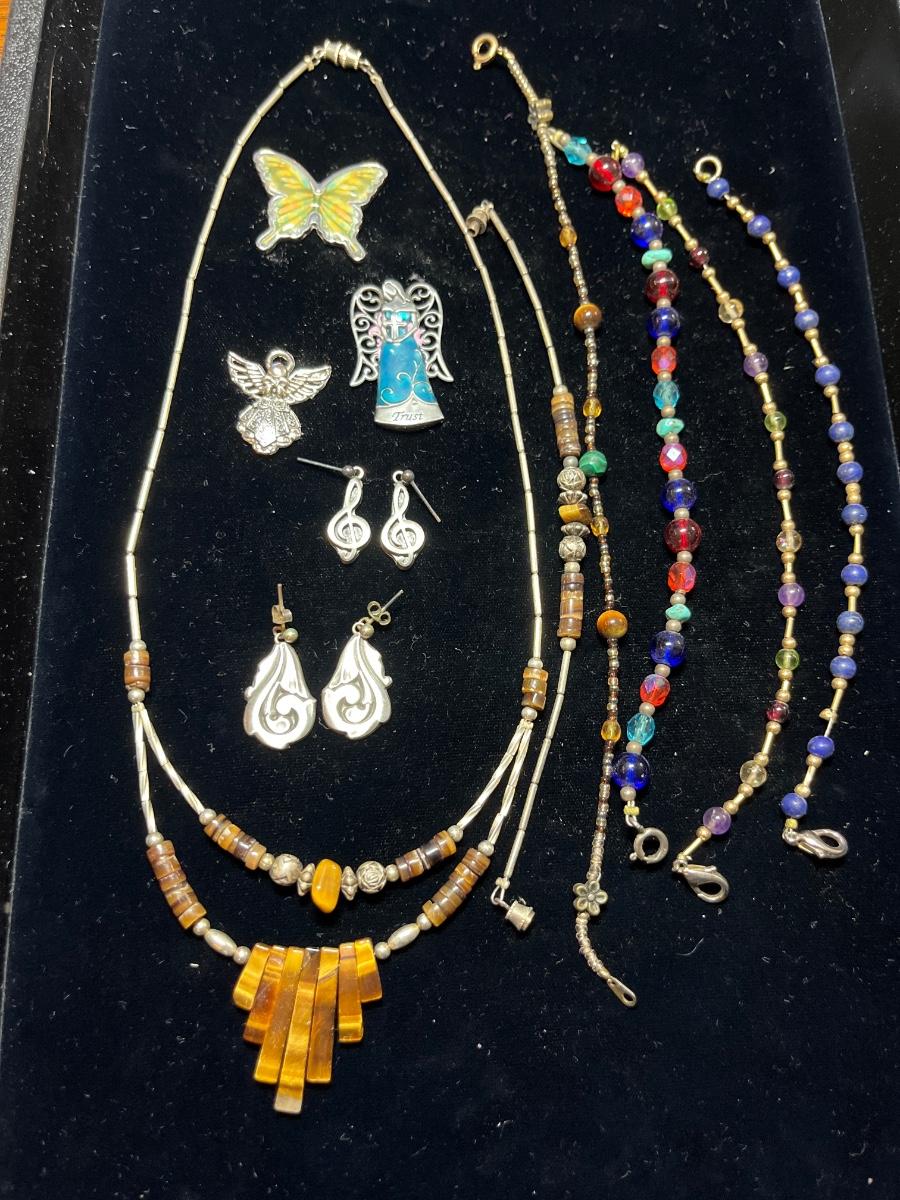 J12- Necklace, bracelets, earrings (2 pr & tokens