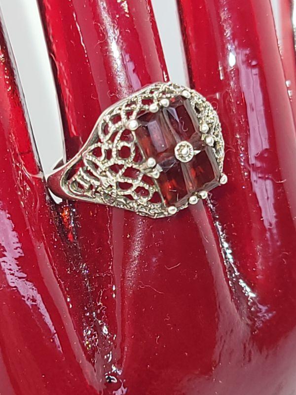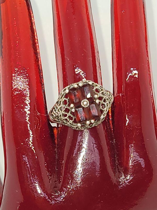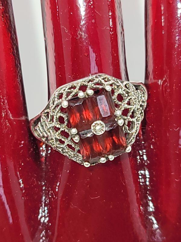 J12: Vintage Fillagree Sterling silver and Garnet Ring