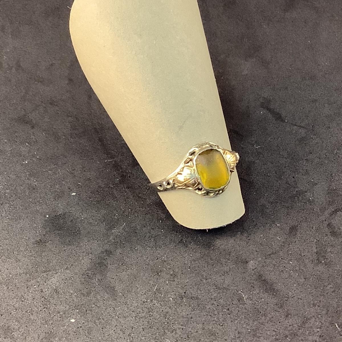 Yellow stone is worn , ring size is 6 and ring weighs 1.4 grams