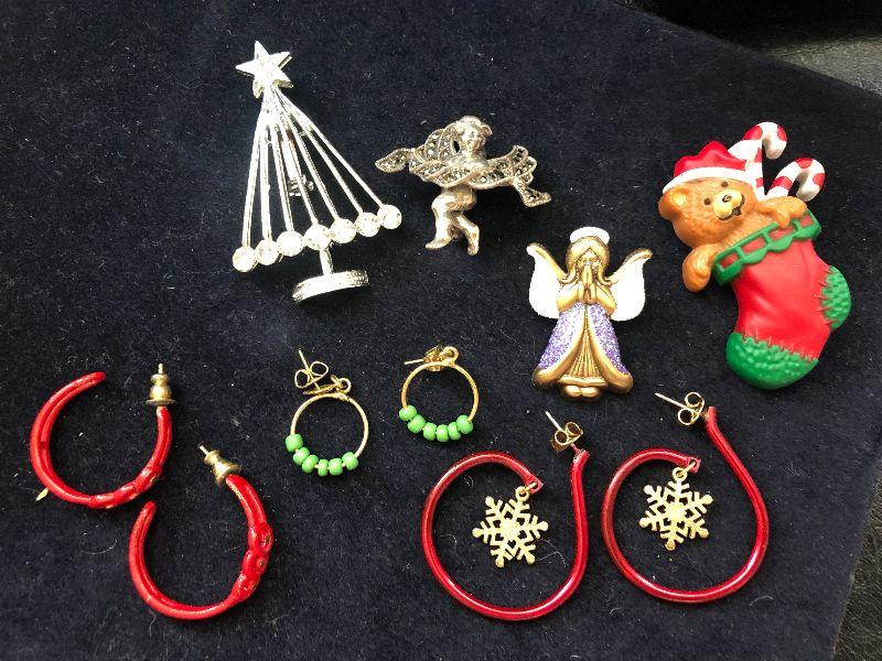 J129: Collection of Christmas Pins and Earrings 1