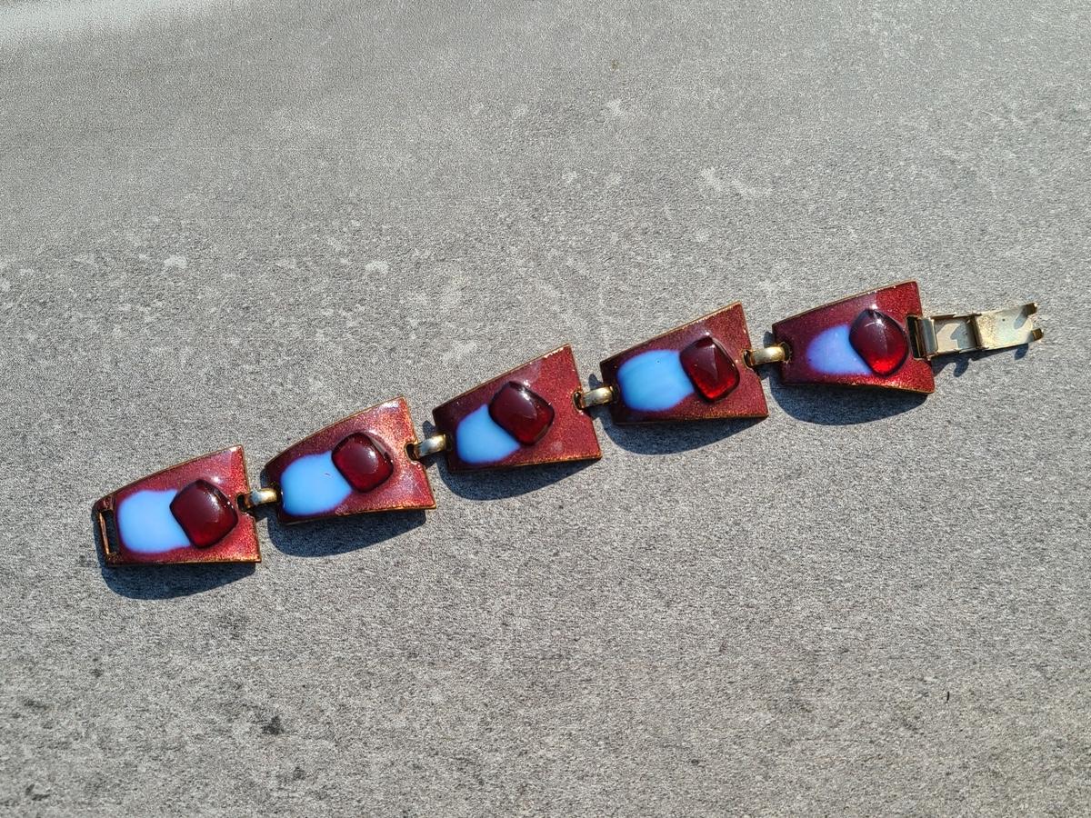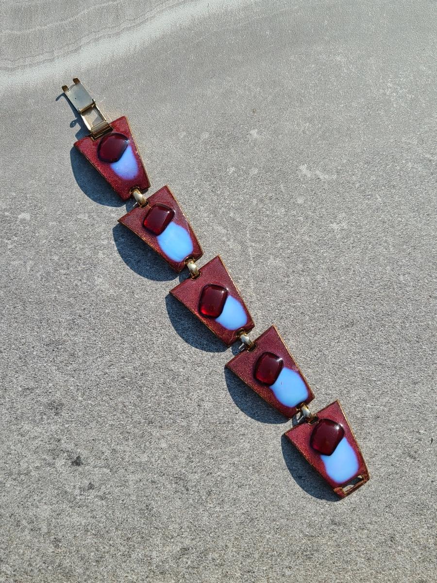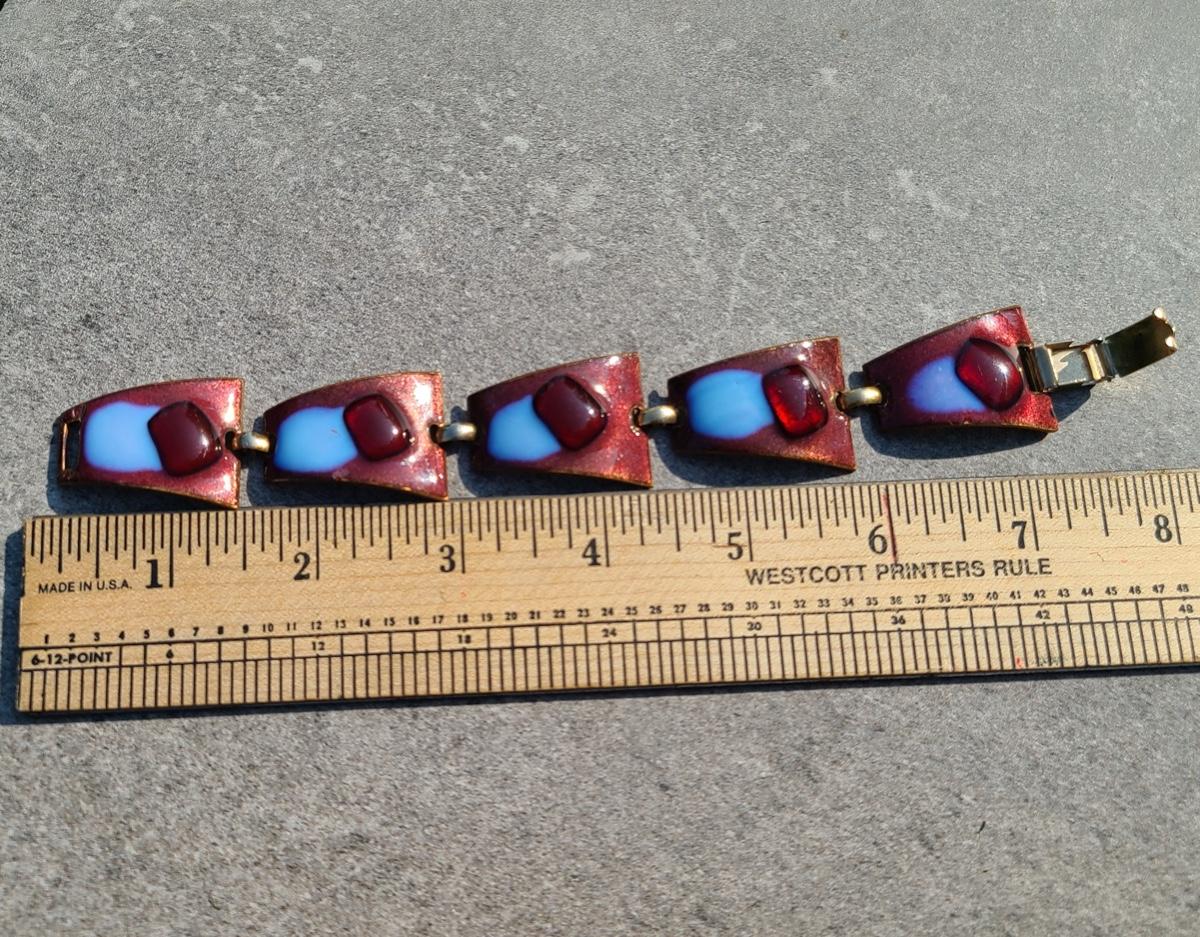 J13: Vintage MCM Enamel over Copper Bracelet by K. Denning