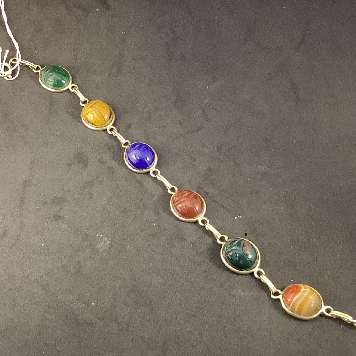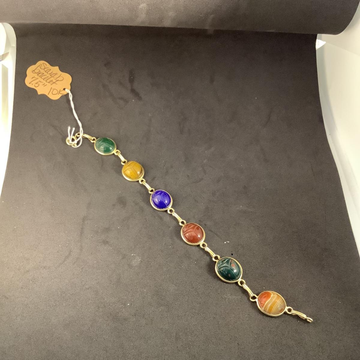 This bracelet tested 10kt yellow gold but has a gold filled spring ring clasp. The length is 7.5"