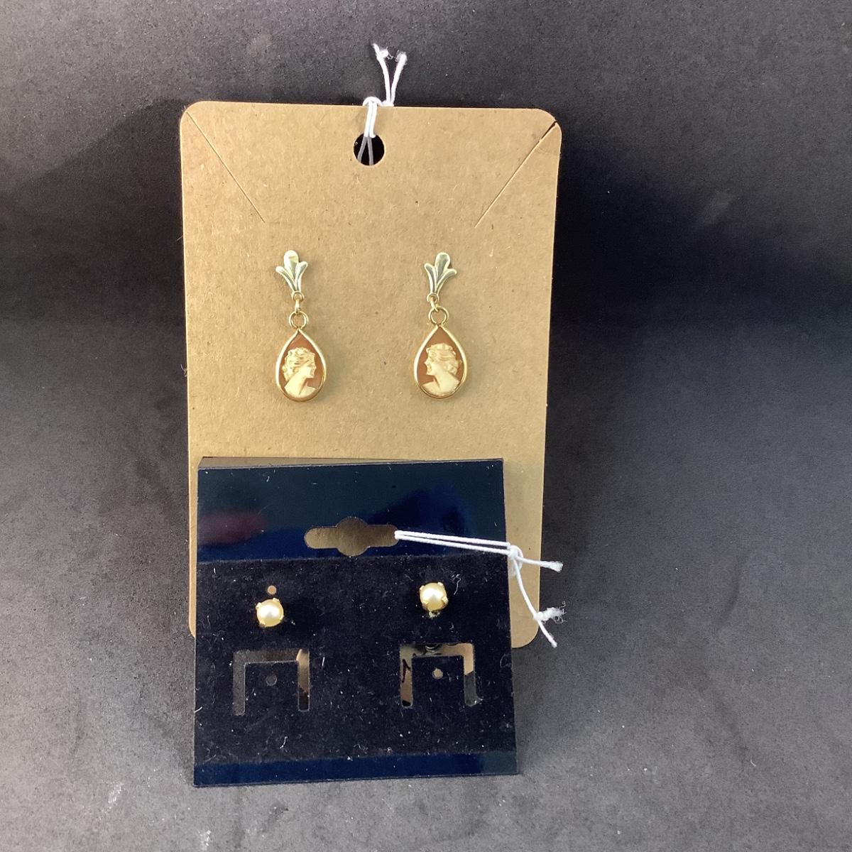 J1311 10k Yellow Gold Cameo Earrings & 14k Yellow Gold Pearl Earrings