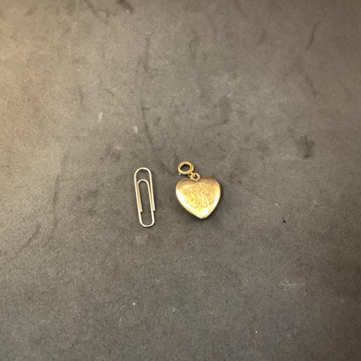 Weighing 2.4 grams and measuring .75" tall , the back side has the initials FRG. The spring clasp is gold filled