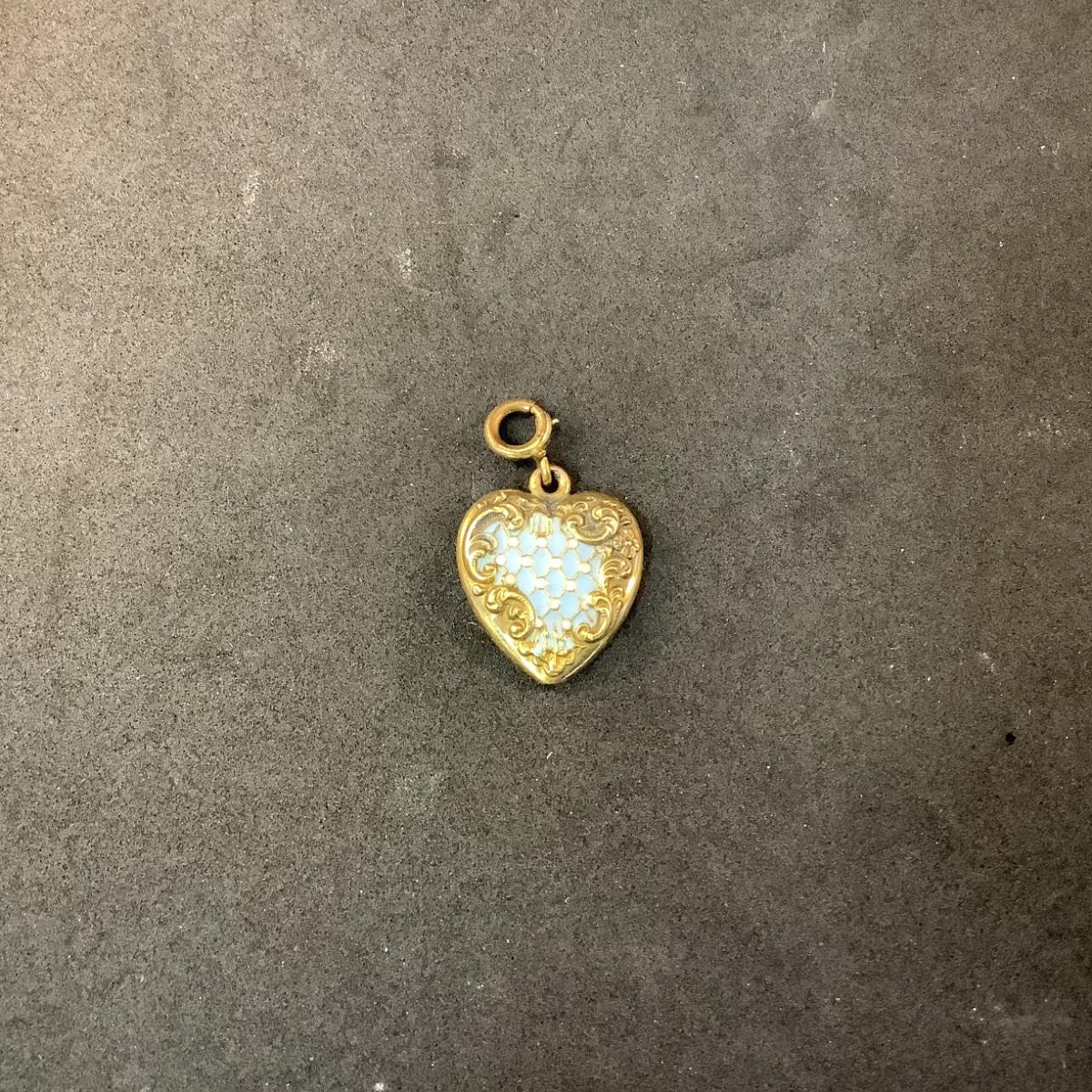J1312 14k Yellow Gold Blue Enamel Heart Pendant