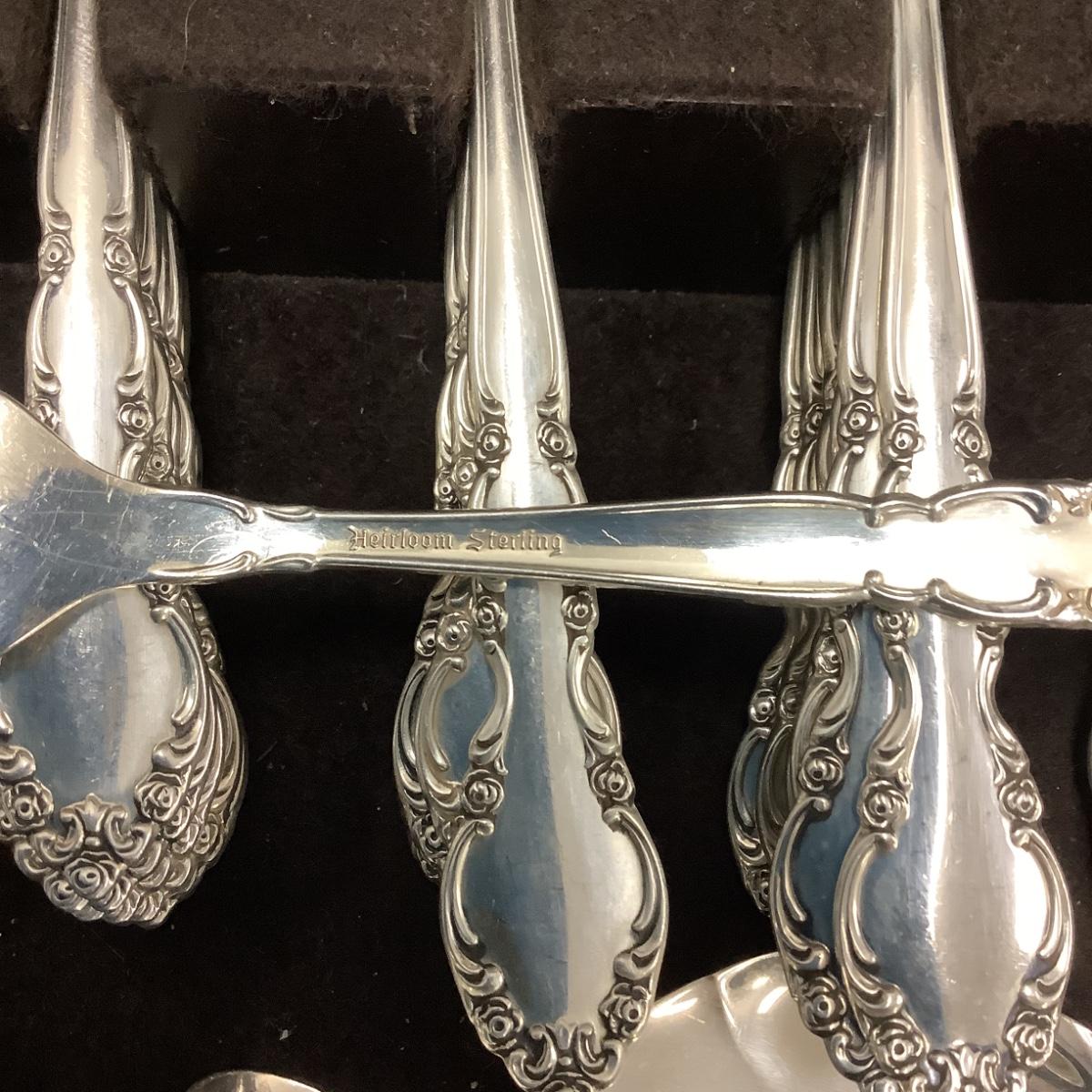 J1327 76 pc set of Grandeur Sterling Silver Flatware Set