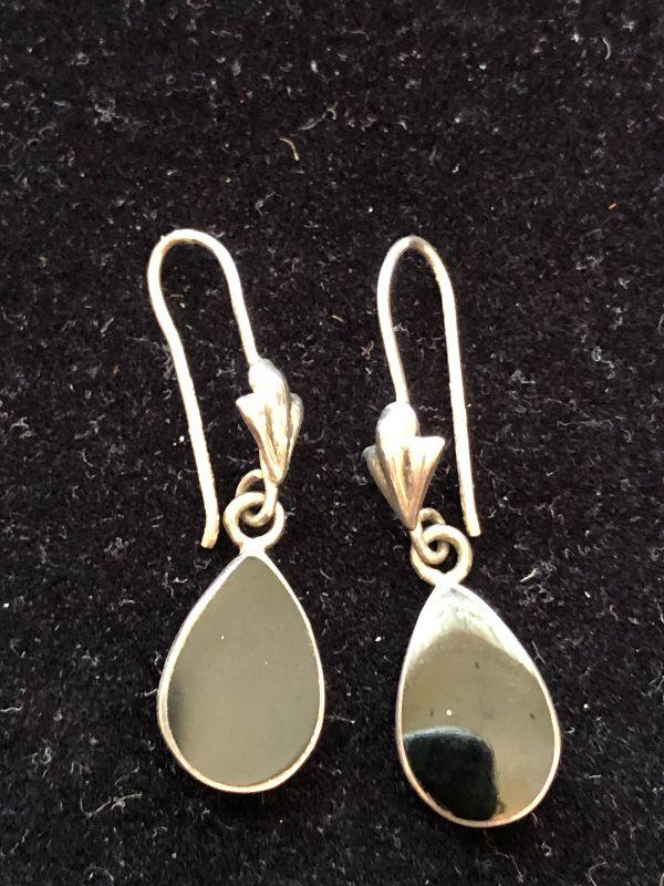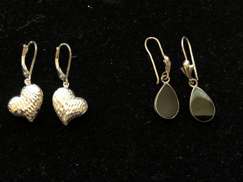 Sterling silver heart earrings and sterling silver teardrop with onyx earrings.