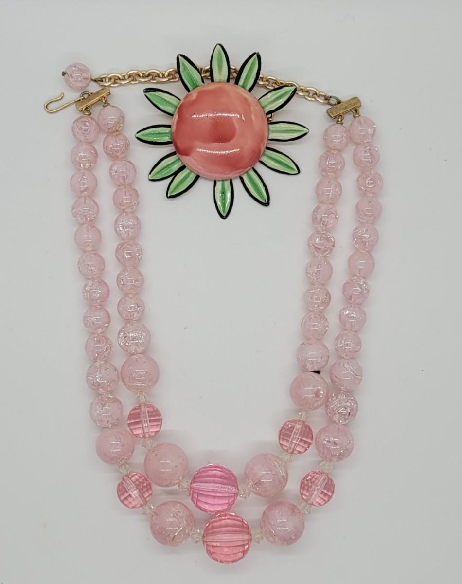 Coro necklace fits up to 16" neck and sweet lil Flower power brooch.