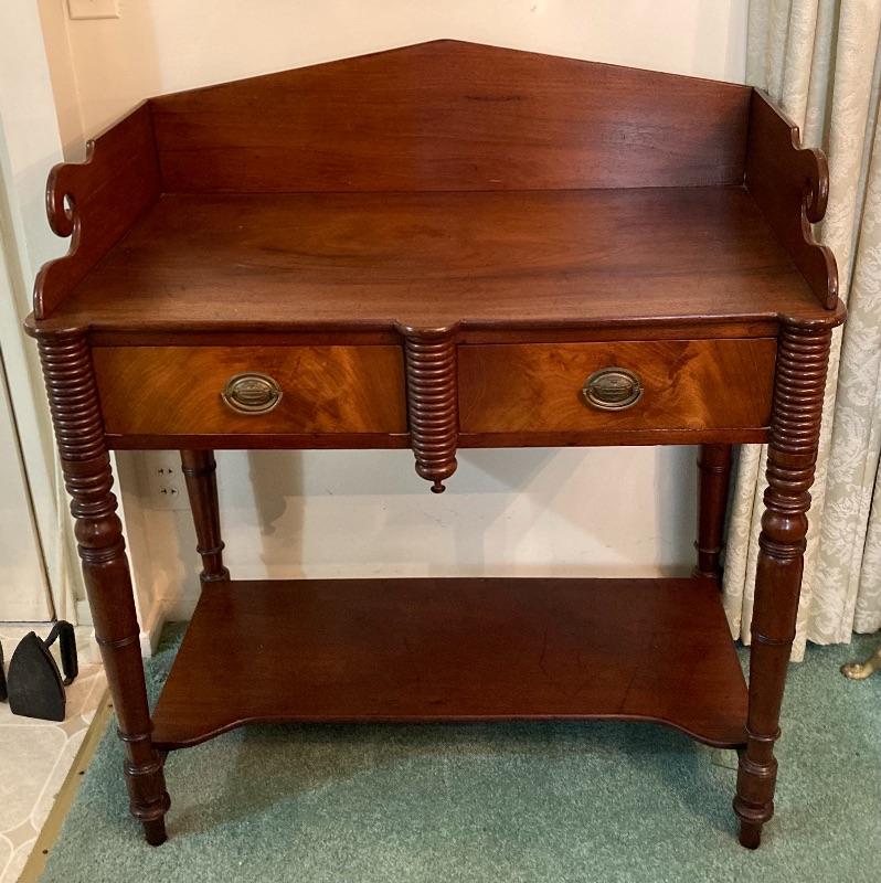 Antique Mahogany two drawer server 30” wide 22” deep and 38” high