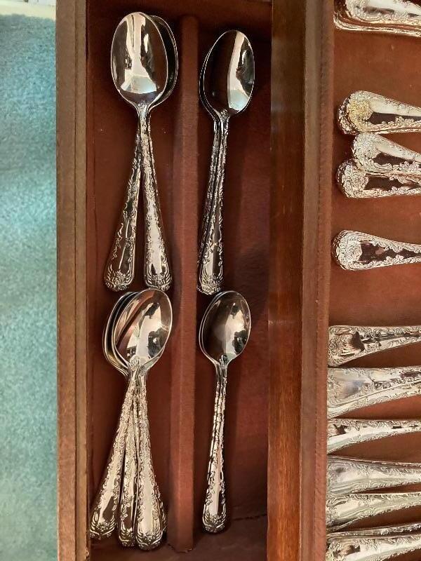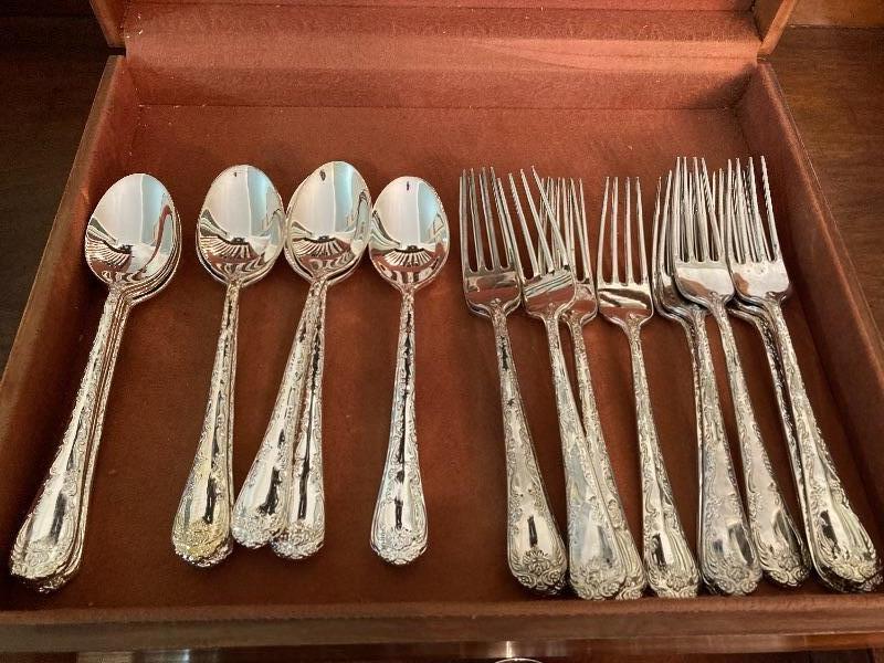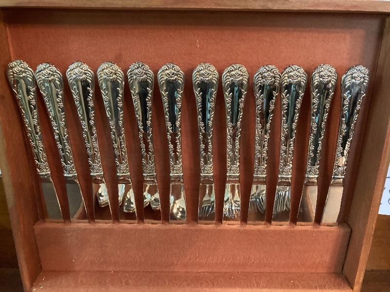 Wm. Rogers & Son 48 piece silver plate flatware set with wooden chest