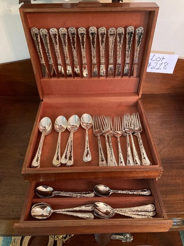 J-222 Wm. Rogers & Son 48pc, Silver Plate Flatware With Wooden Chest