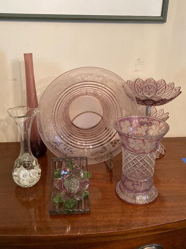 Six pieces of Amethyst Glassware