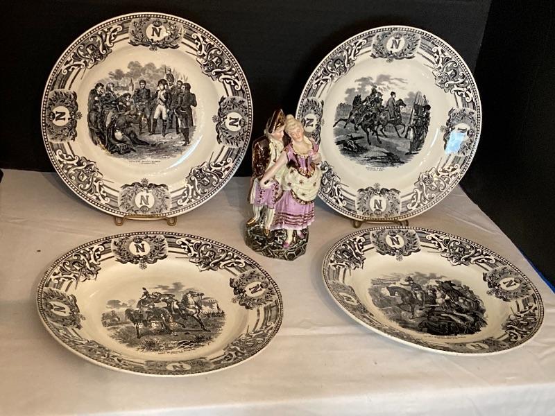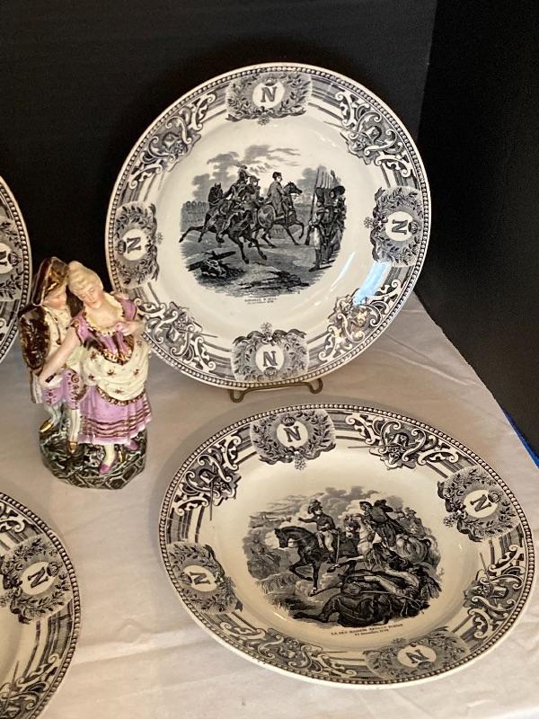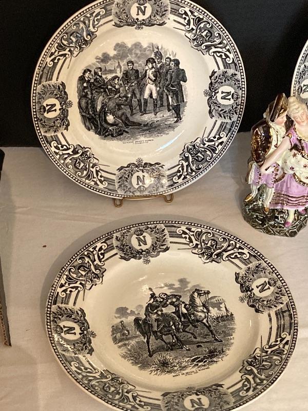 J-231 Keramis B.F. Napoleon Transferware Plates and Figurine