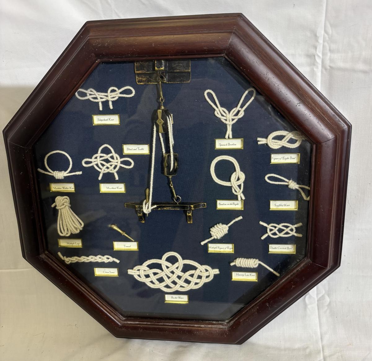 J24-14 Shadow Box of Nautical Knots Octagonal Knotboard, Sailors Knots